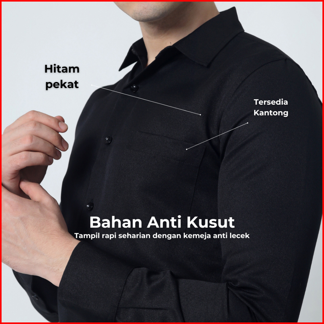 Almano Oxford Shirt Ls Black Kemeja Pria Slim Fit Polos Panjang Hitam