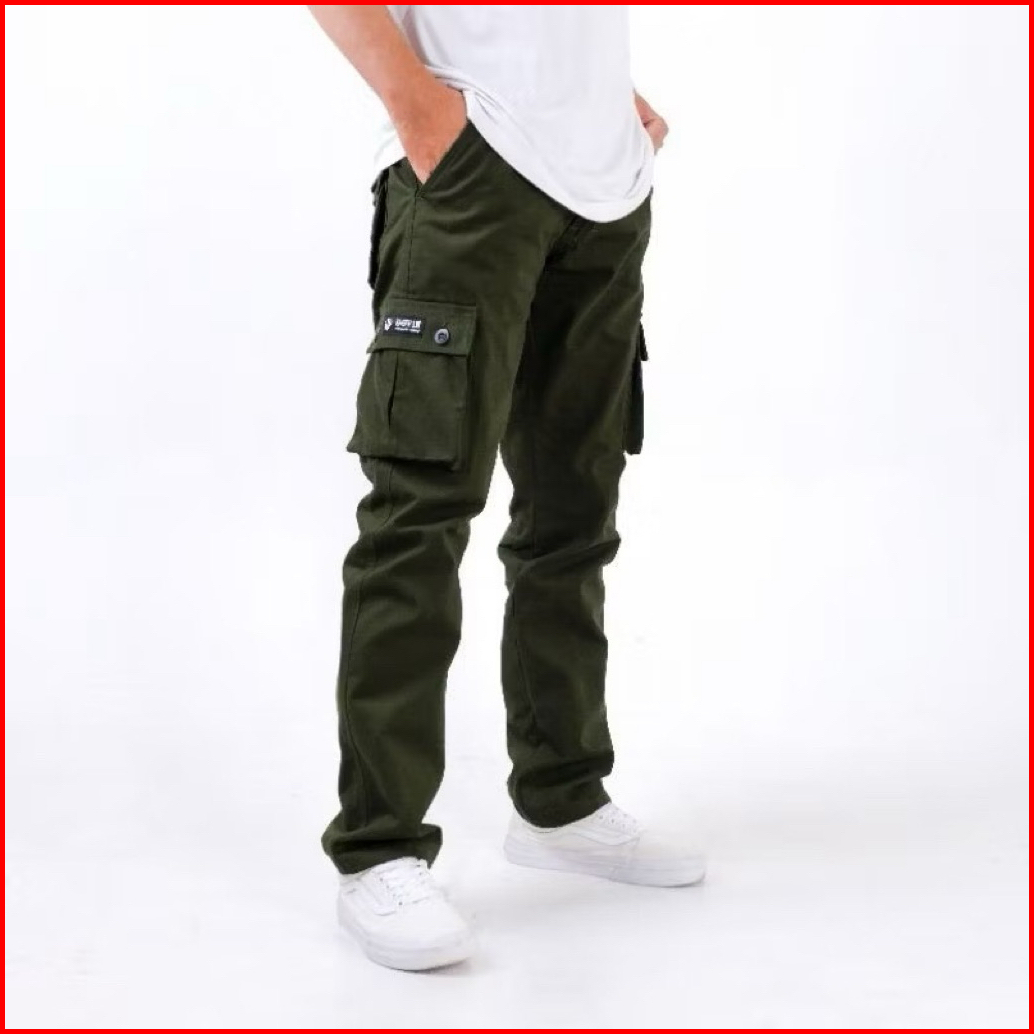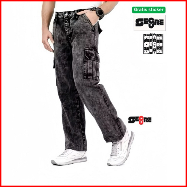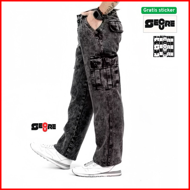 Celana Cargo Pria Loose Fit - Celana Panjang Semi Denim Skena - Gaya Streetwear Kekinian