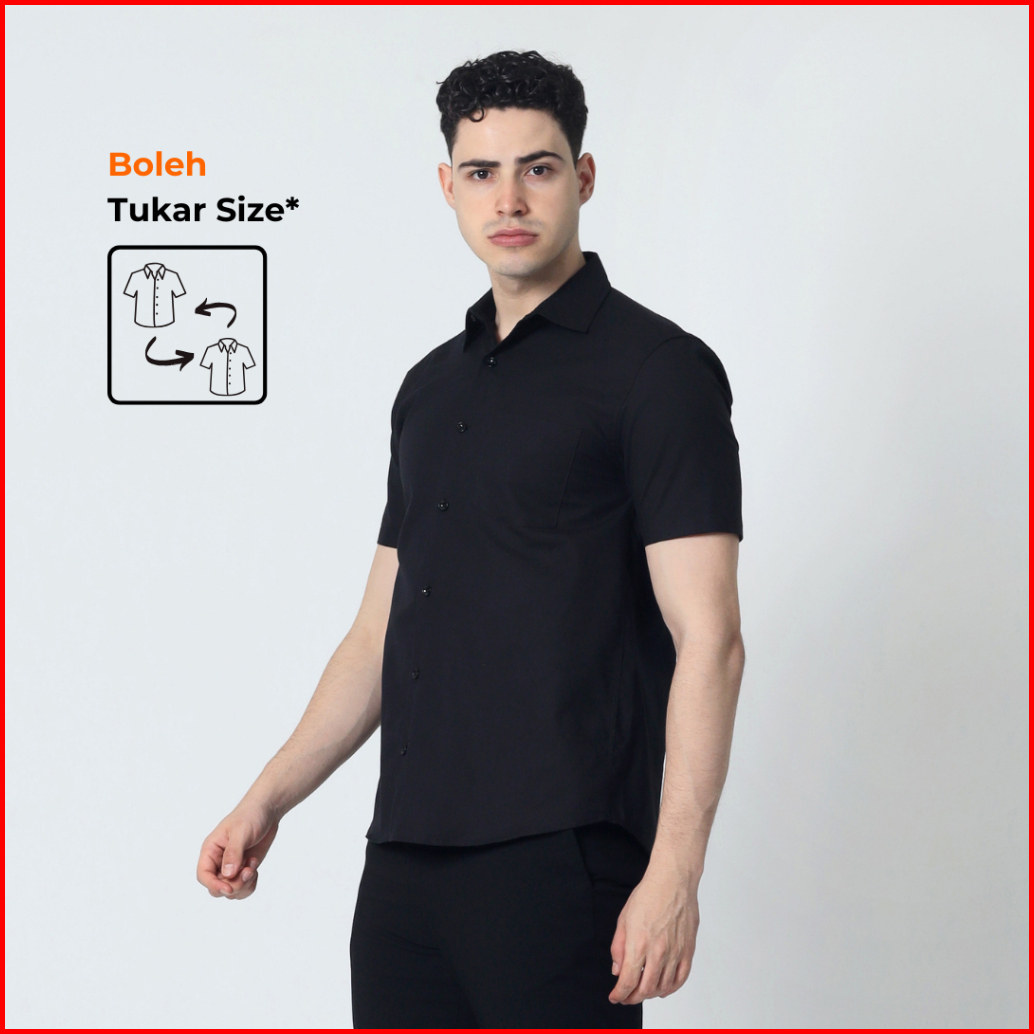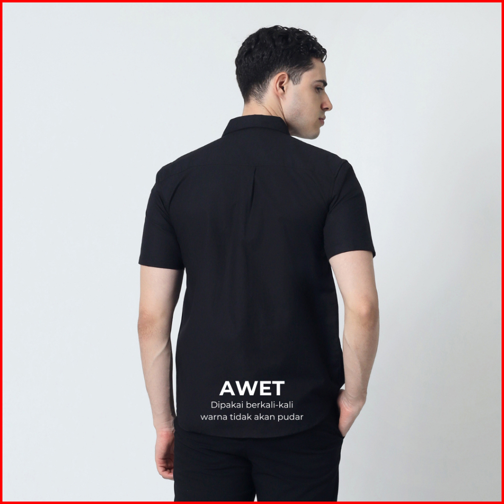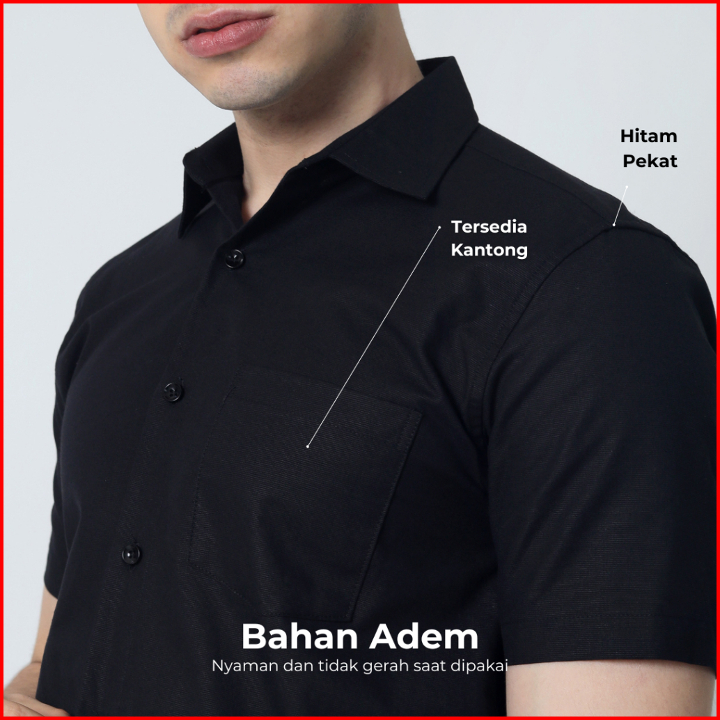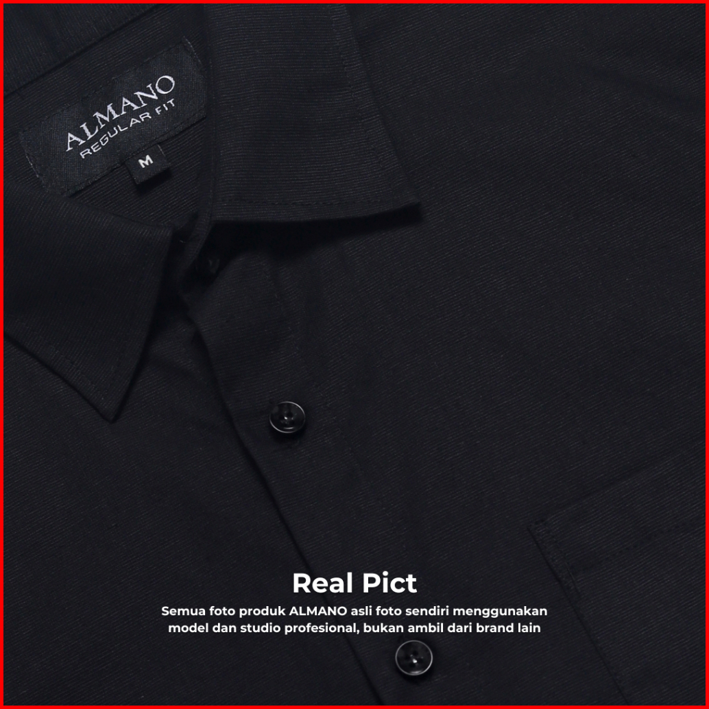 Almano Tomy Shirt Ss Black Kemeja Pria Regular Fit Polos Pendek Hitam