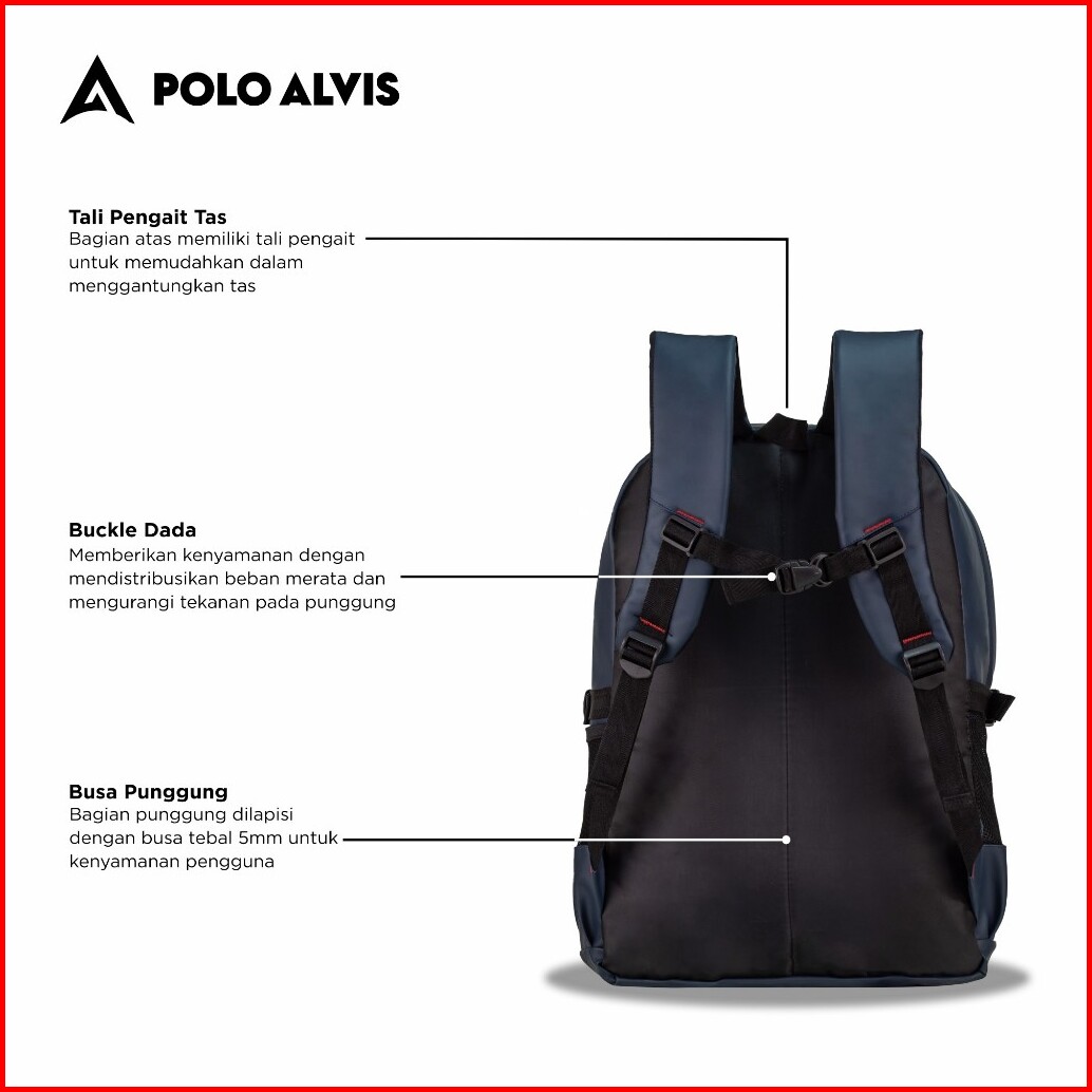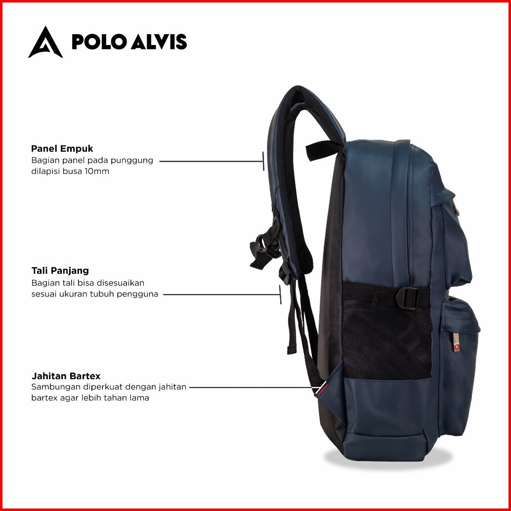 Polo Alvis - Urban Havana Navy Waterproof Tas Ransel Pria Anti Air Backpack Laptop 15in Tebal