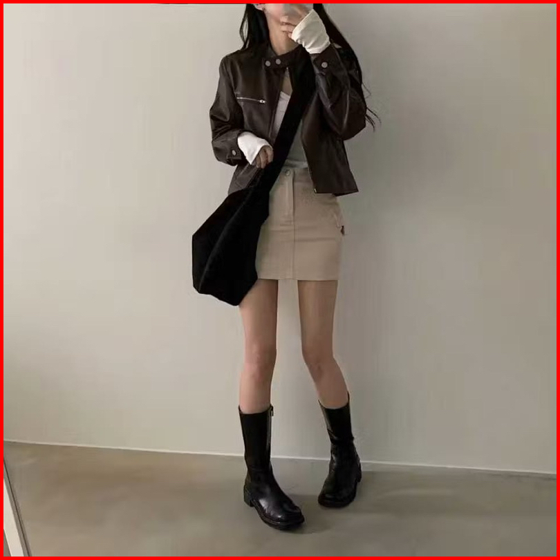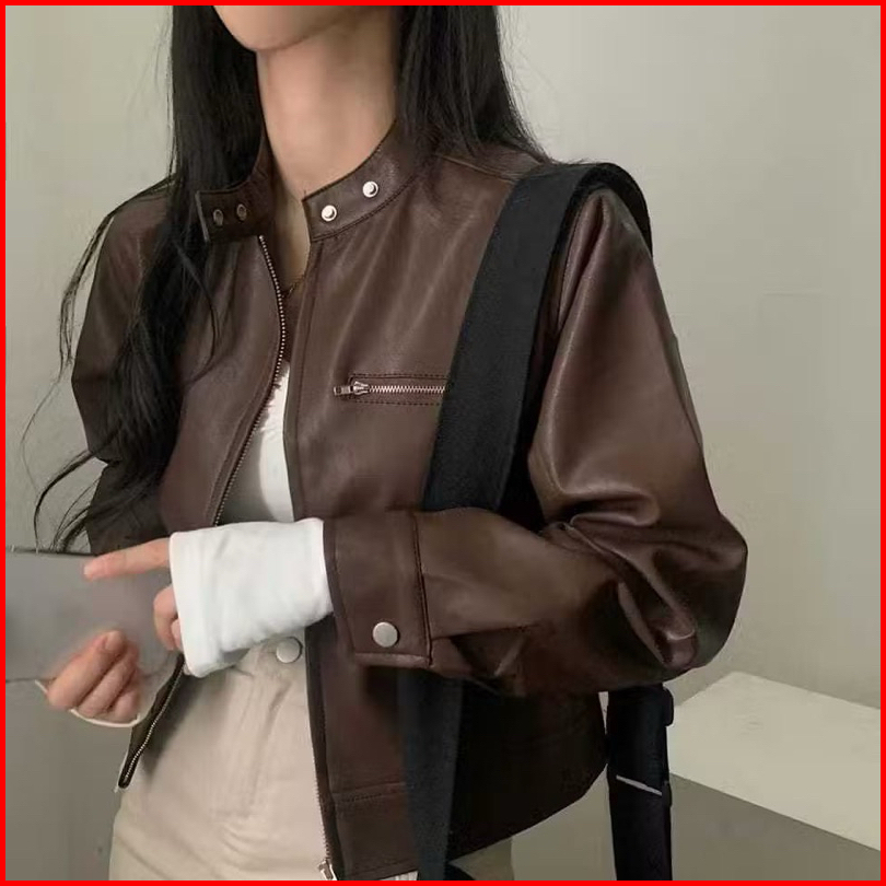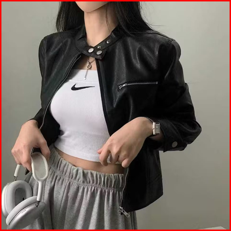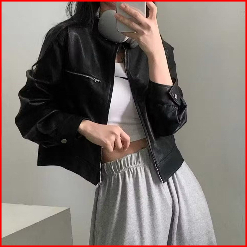 Yorj.id Jaketkulit Wanita Crop Simple Terbaru