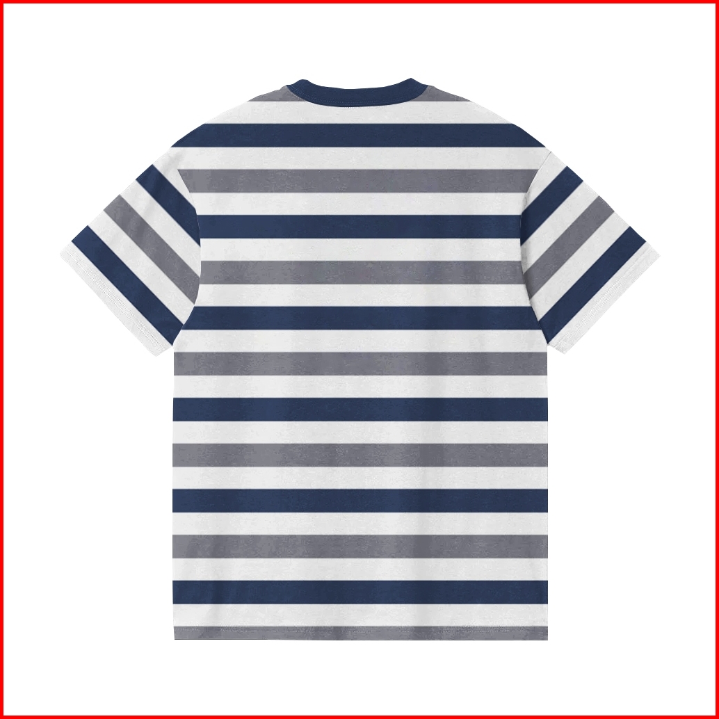 Secondly.id Kaos Salur Lengan Pendek Tshirt Three Color Stripe Navy Abu 24s