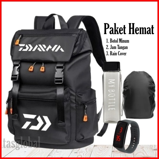 New Tas Ransel Pria Tahan Air Waterproof Ransel Kulit Jumbo Sekolah Pria Black Tas Punggung