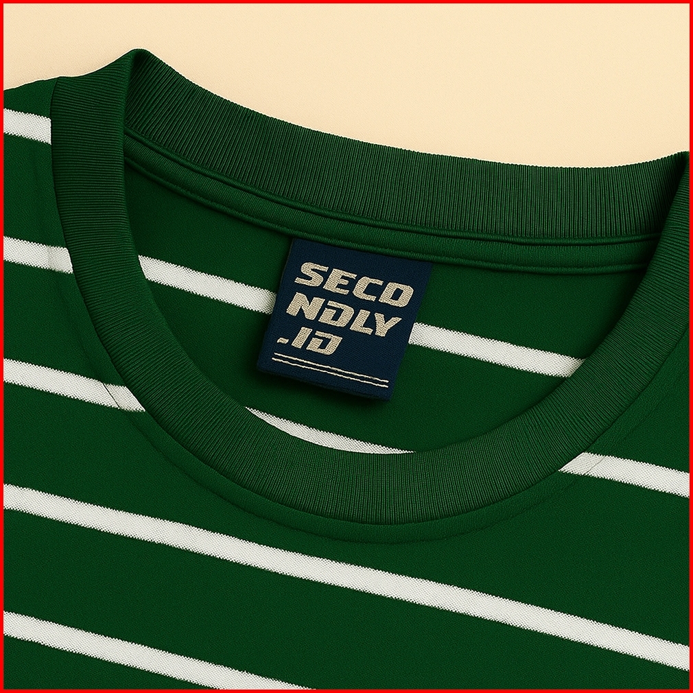 Secondly.id Tshirt Stripe Hijau Medium - Kaos Salur Jumbo Lengan Pendek Cotton 24s