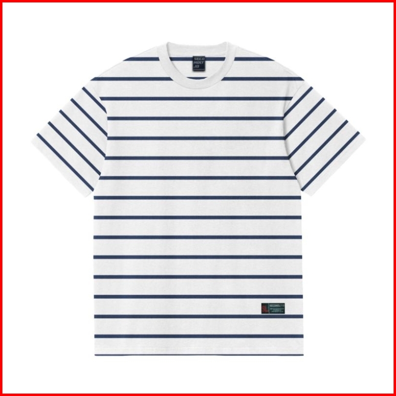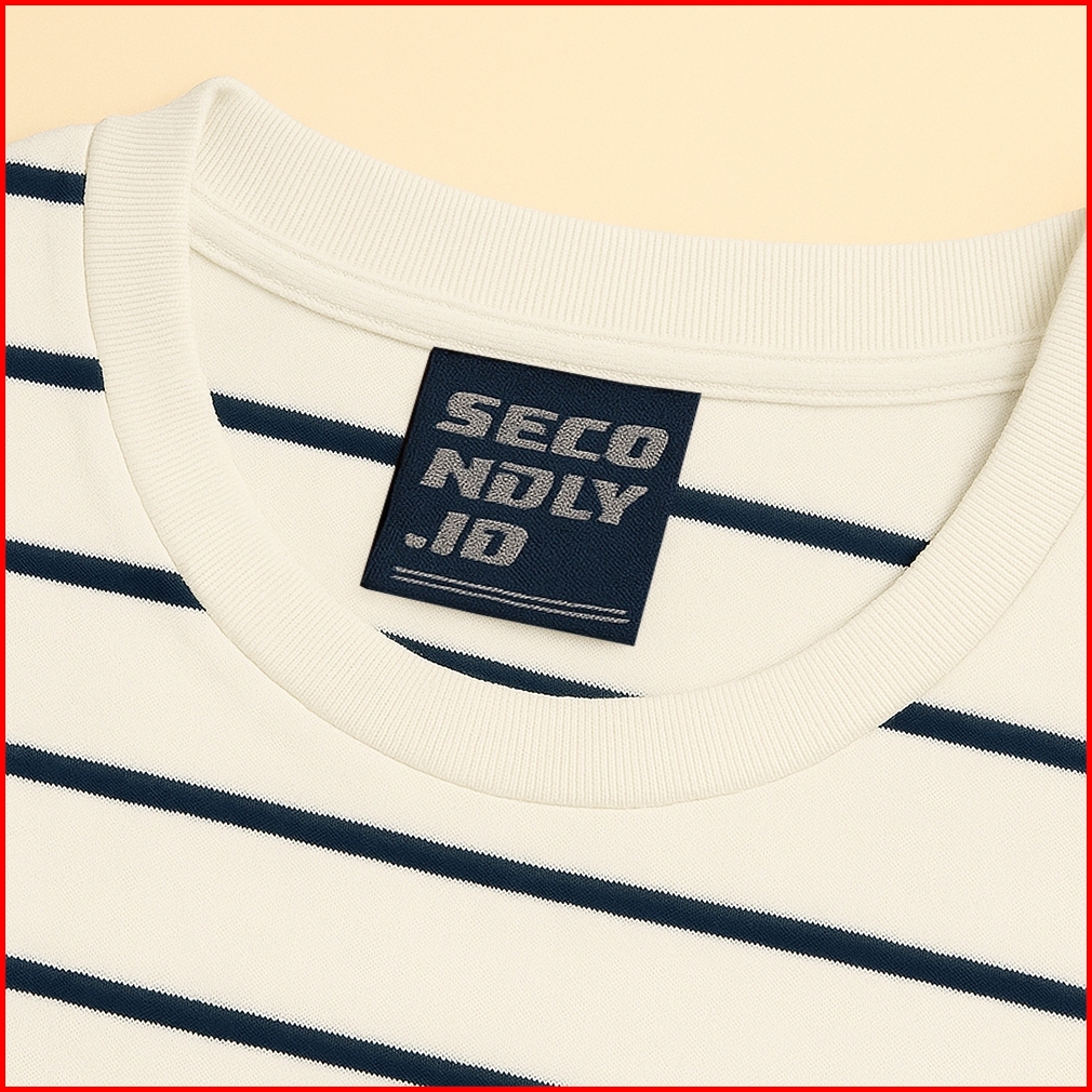 Secondly.id Tshirt Stripe Putih Navy Medium - Kaos Salur Jumbo Lengan Pendek Cotton 24s