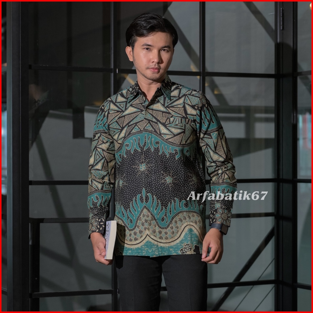 Babayo Hitam Tosca Kemeja Batik Pria Tangan Panjang Doby Solo Premium Lapis Full Furing Trikot Wafle Ready Seragaman By