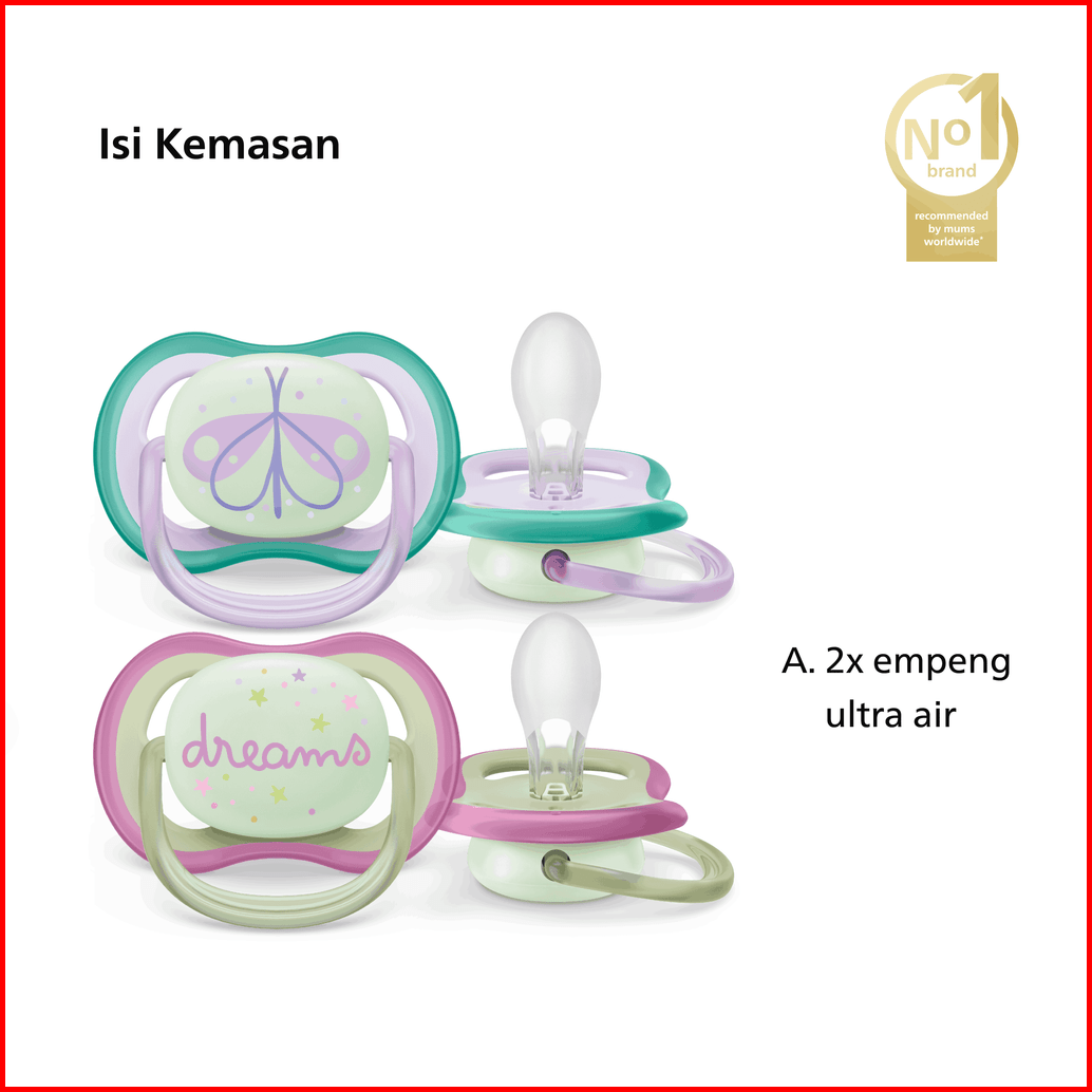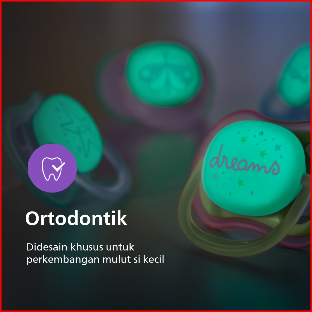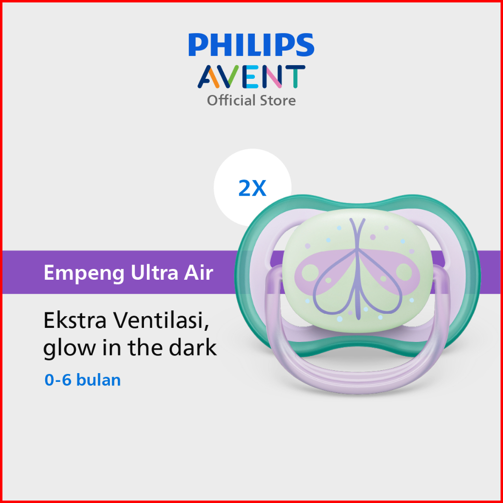Philips Avent Empeng Bayi Soother Bayi Ultra Air Glow In The Dark Empeng Dengan Ekstra Ventilasi Character 0-6m Scf376 1