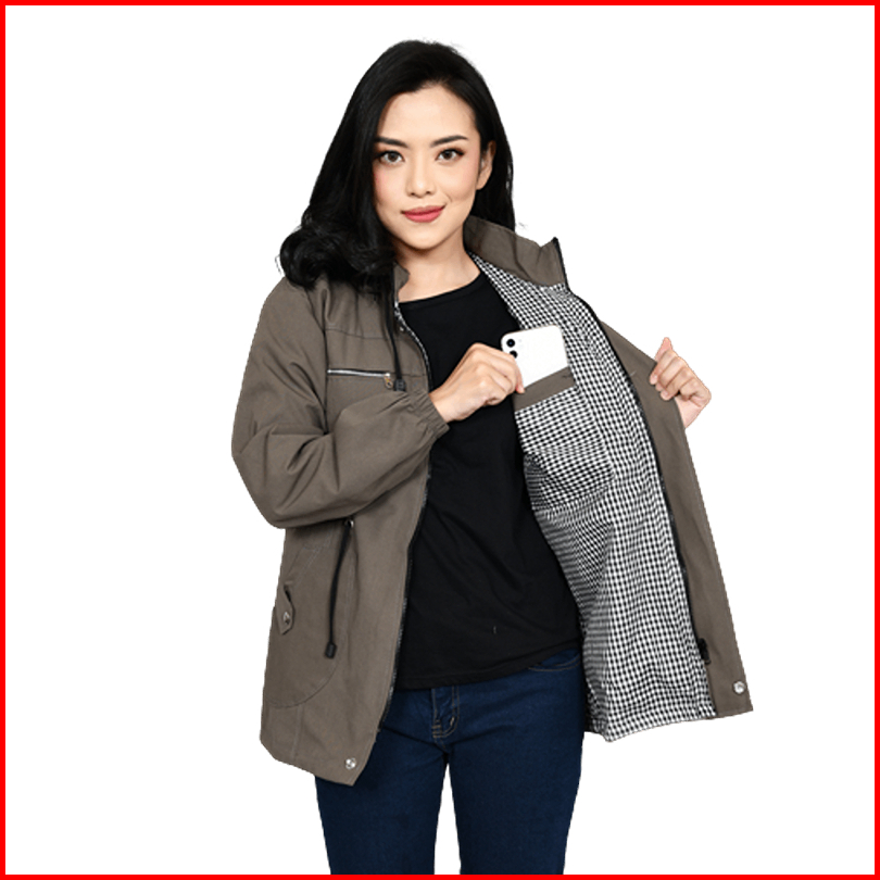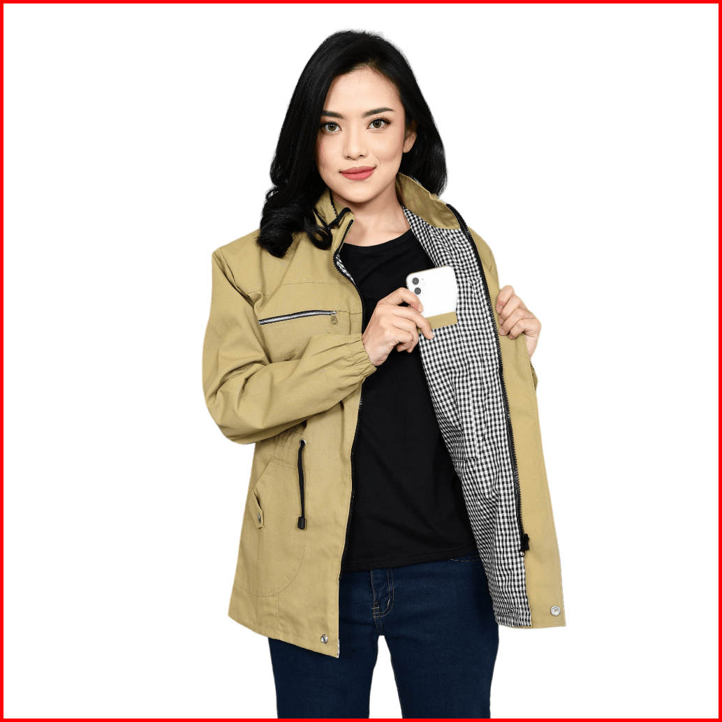 Jaket Wanita Tebal Premium Ori Korean Style Original Bahan Baby Canvas Warna Krem