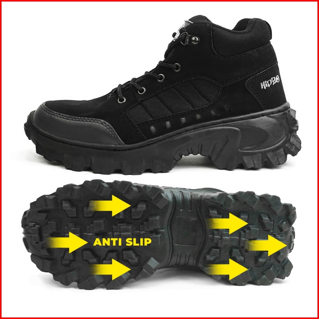 Hipzo Sepatu Safety Boots Tinggi M079 Untuk Ujung Besi Kerja Proyek Lapangan