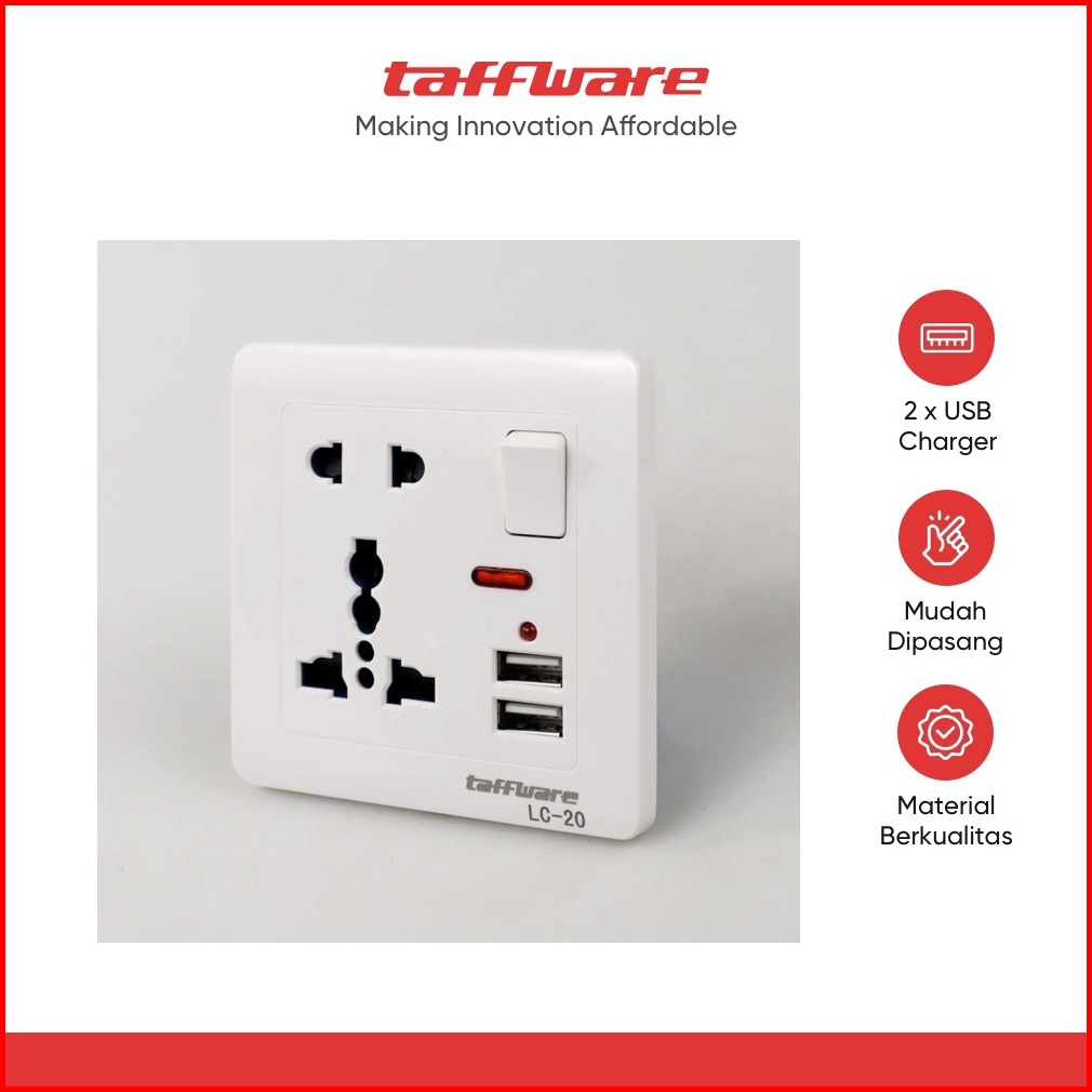 Taffware Stop Kontak Universal Uk Eu Us 2 Port Usb On Off Switch - Lc-20