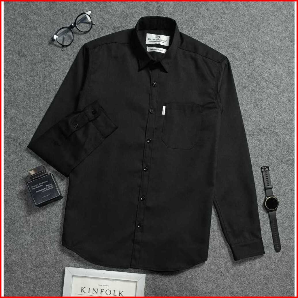 Detak Original Kemeja Polos Pria Lengan Panjang Hitam Premium Slim-fit