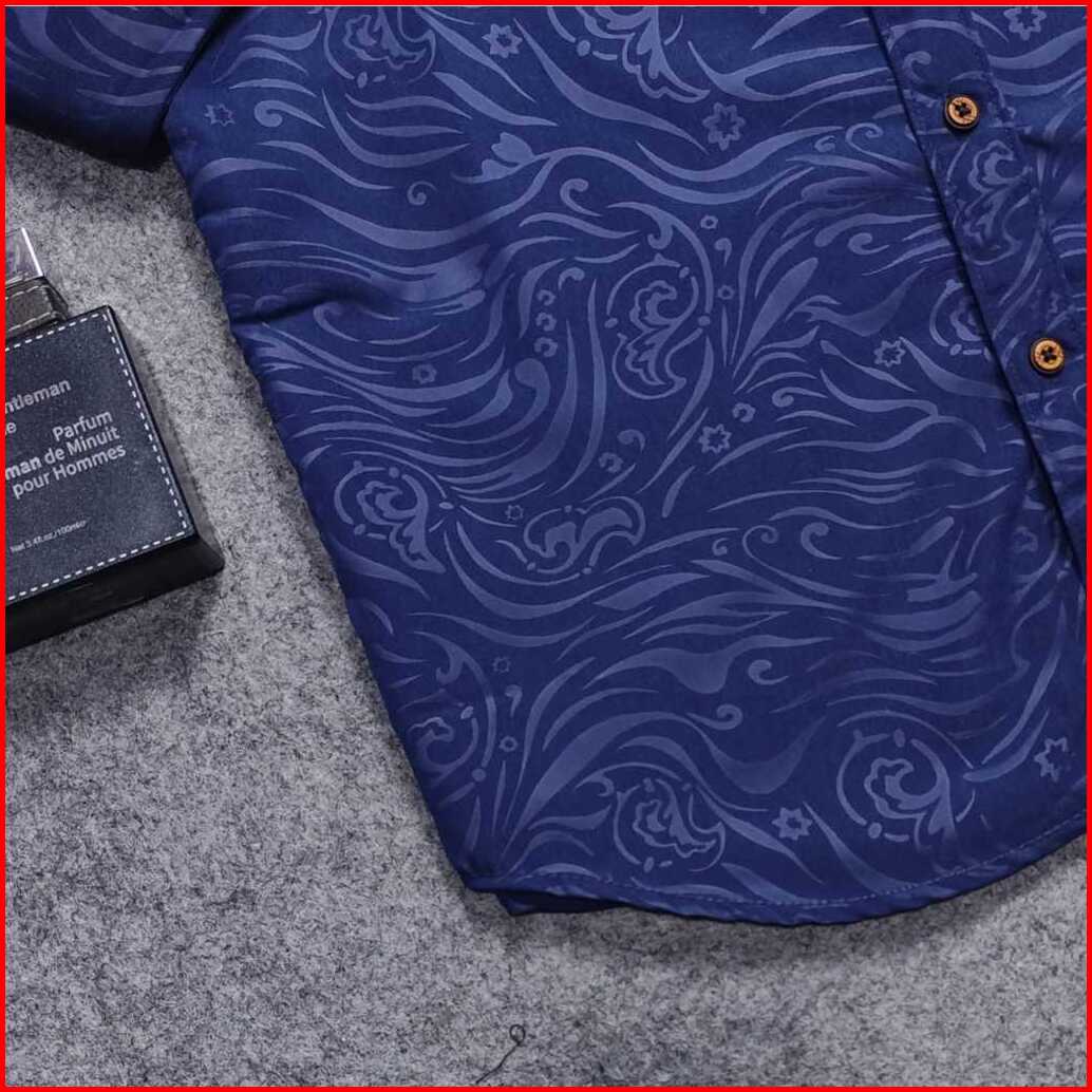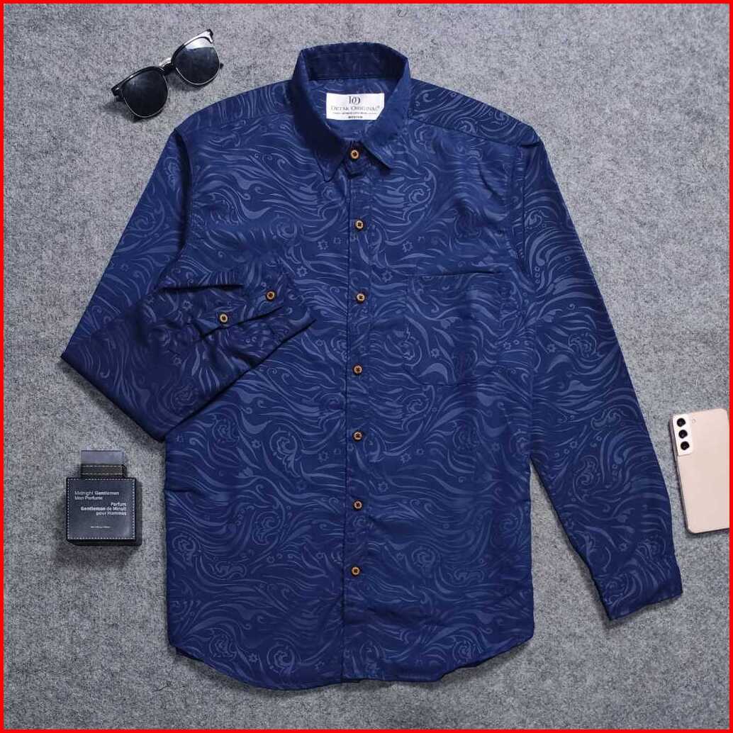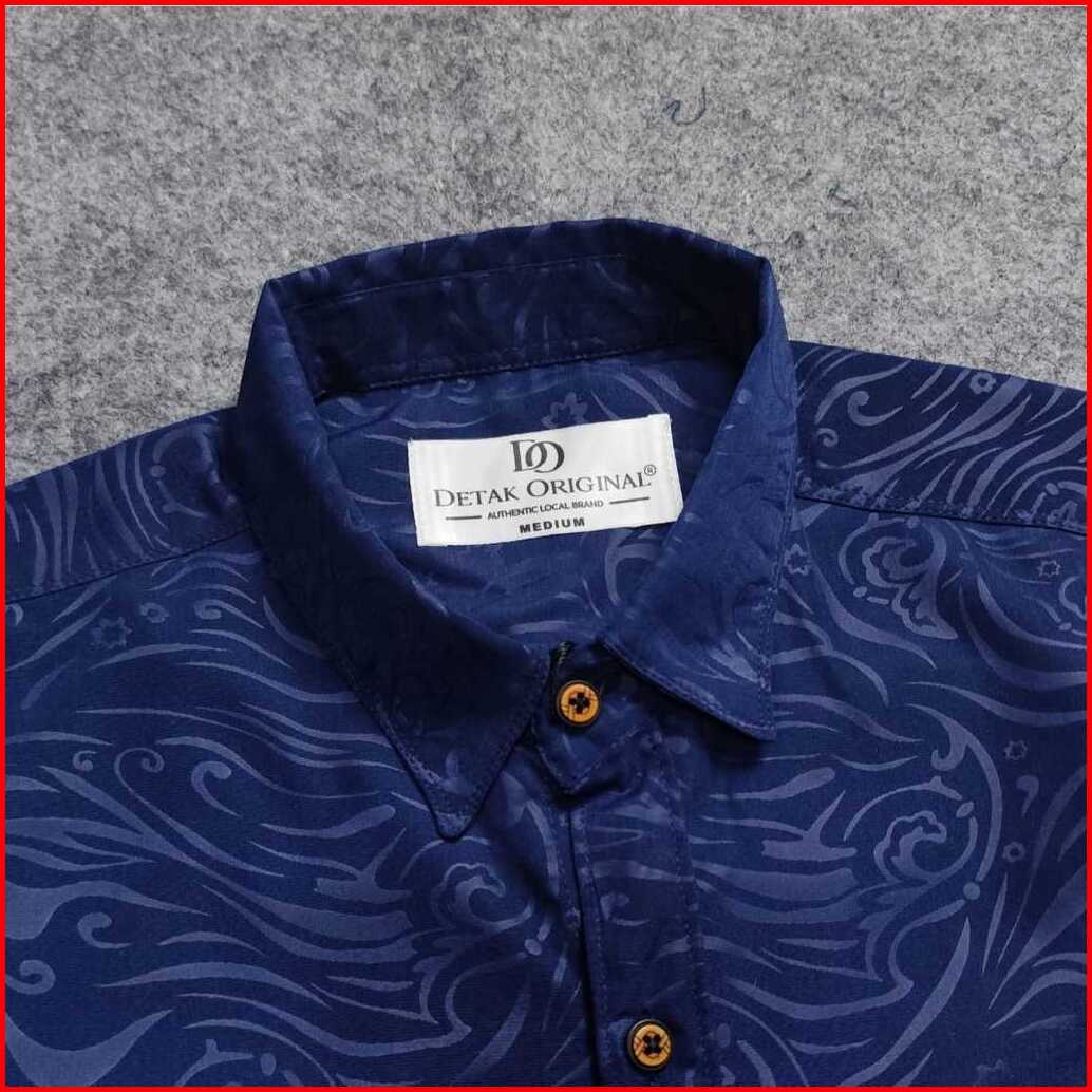 Detak Original Kemeja Embos Sultan Pria Lengan Panjang Yakuza Navy Casual Slimfit
