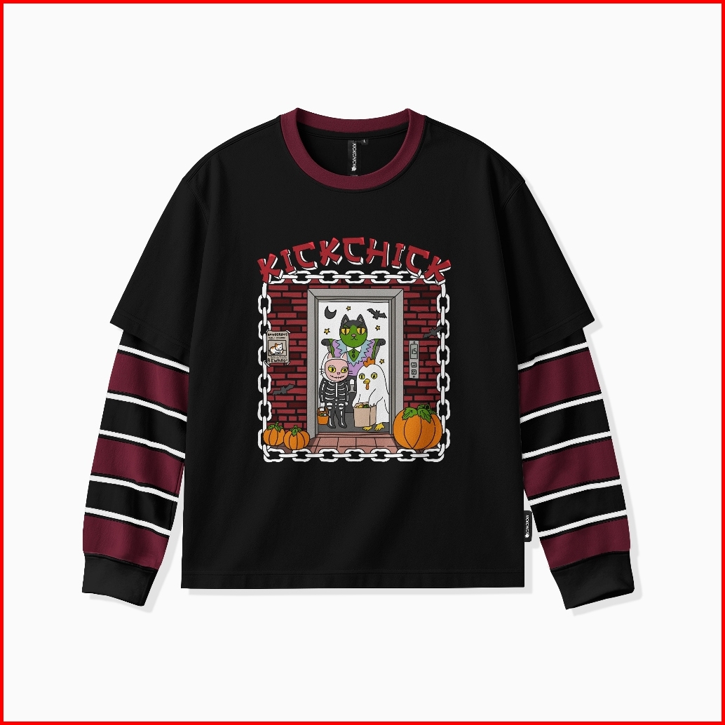 Kickchick Doublesleeve Stripe Fright Night Black Maroon Kaos Atasan Lengan Panjang Kc-ds-strip003