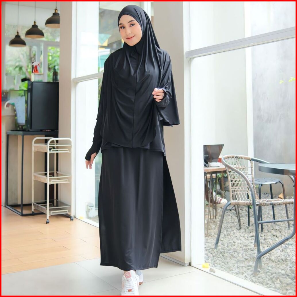 Prqueen Denay Sporty Muslimah Set 3in1 Baju Olahraga Wanita Model Rok Celana Hijab Baju Olah Raga Syar I Muslimah