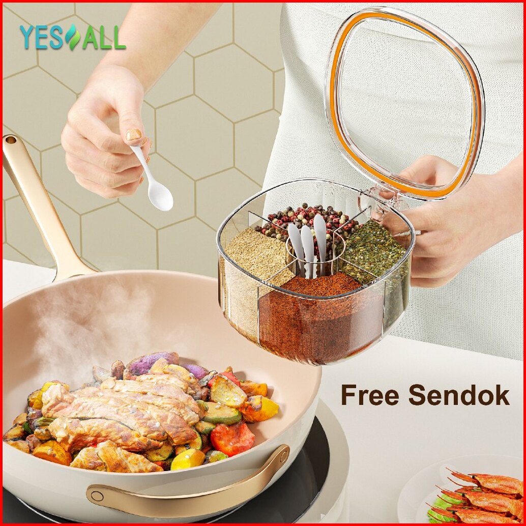 Yesall Tempat Bumbu Dapur Set 4 In 1 Free Sendok Piring Aesthetic Wadah Toples Bumbu Dapur 4 Sekat Tempat Kotak Penyimpa