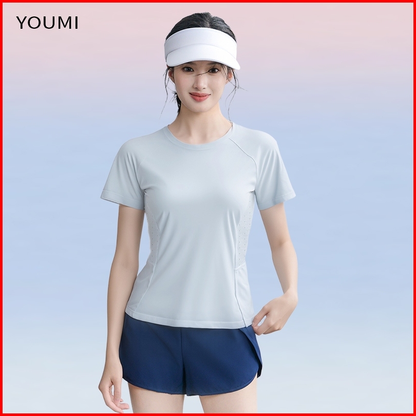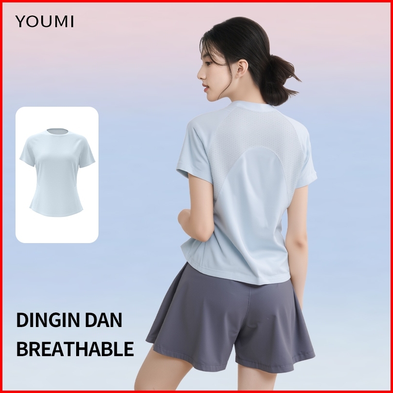 Youmi Baju Gym Kaos Olahraga Wanita Lengan Pendek Quick-drying Terbaru Yoga Senam Fitnes Badminton Volly Running T-shirt
