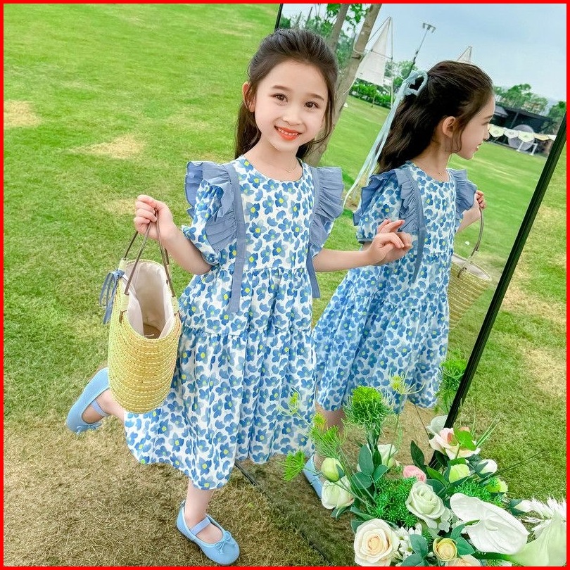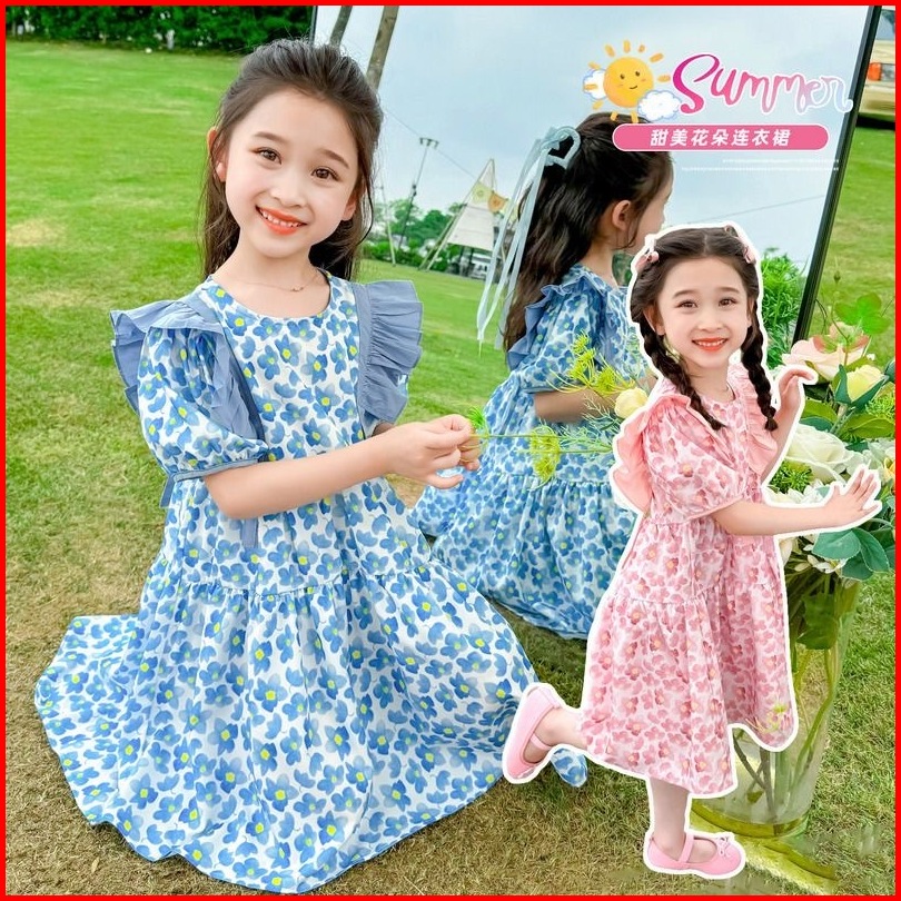 Princess Kesli 2-11 Tahun Gaun Anak Perempuan 2025 Gaya Baru Bayi Perempuan Gaun Musim Panas Rok Bunga Tipis Anak-anak M