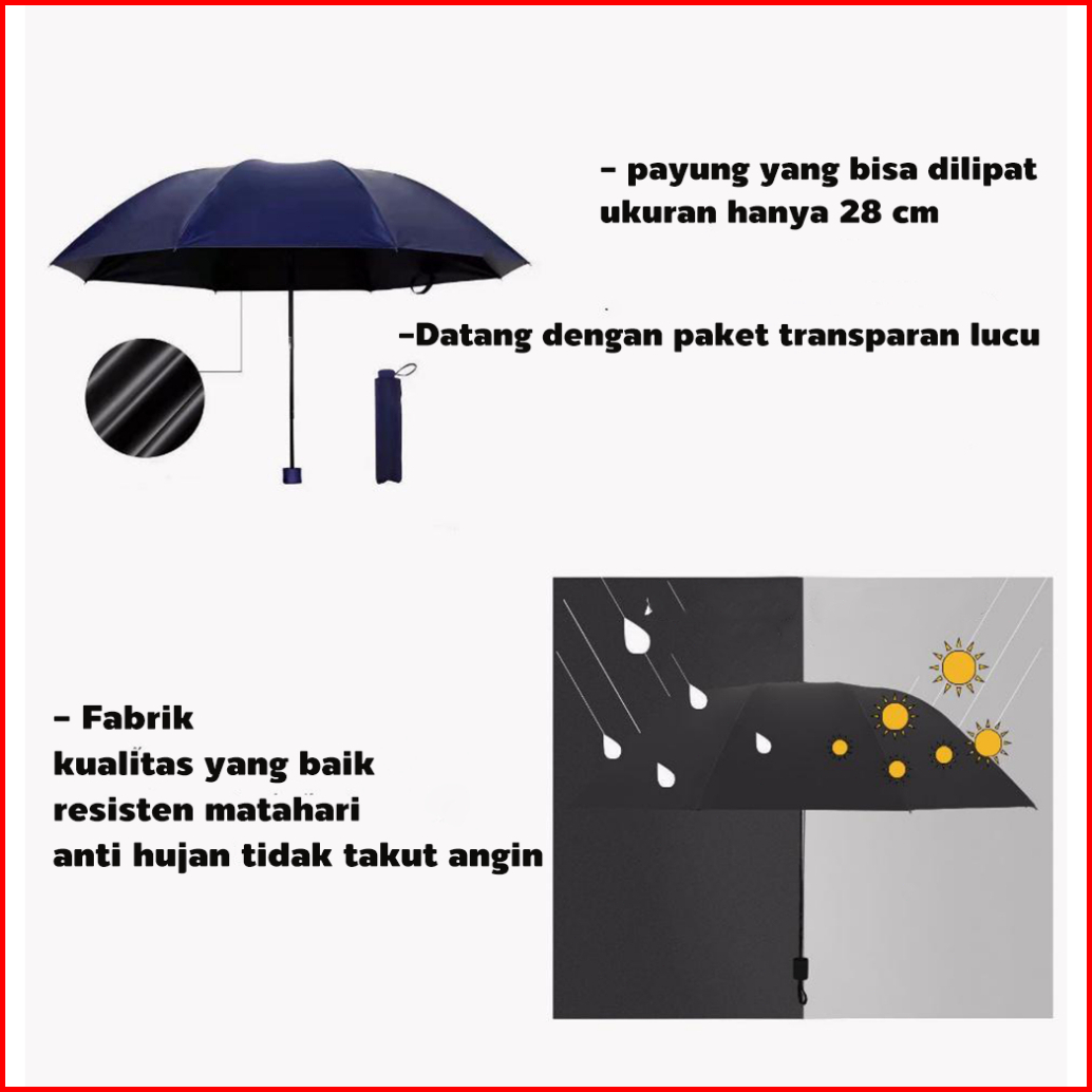 Holo Payung Lipat Manual Anti Uv Anti Hujan Super Prevent Sun Umbrella Anti Hujan Motif Polos