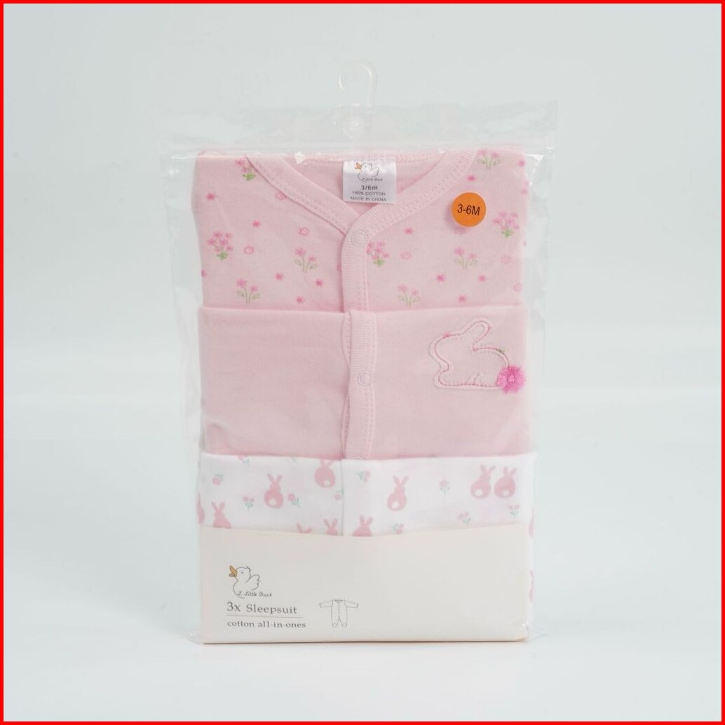 Miniboo - Baby Sleepsuit 3pcs Motif Pink Bunny