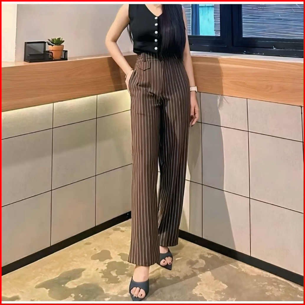 Rsfashion - Oro Pants Stripe Bangkok - Celana Anti Kusut - Celana Panjang Korean Style - Celana Panjang Highwaist Wanita