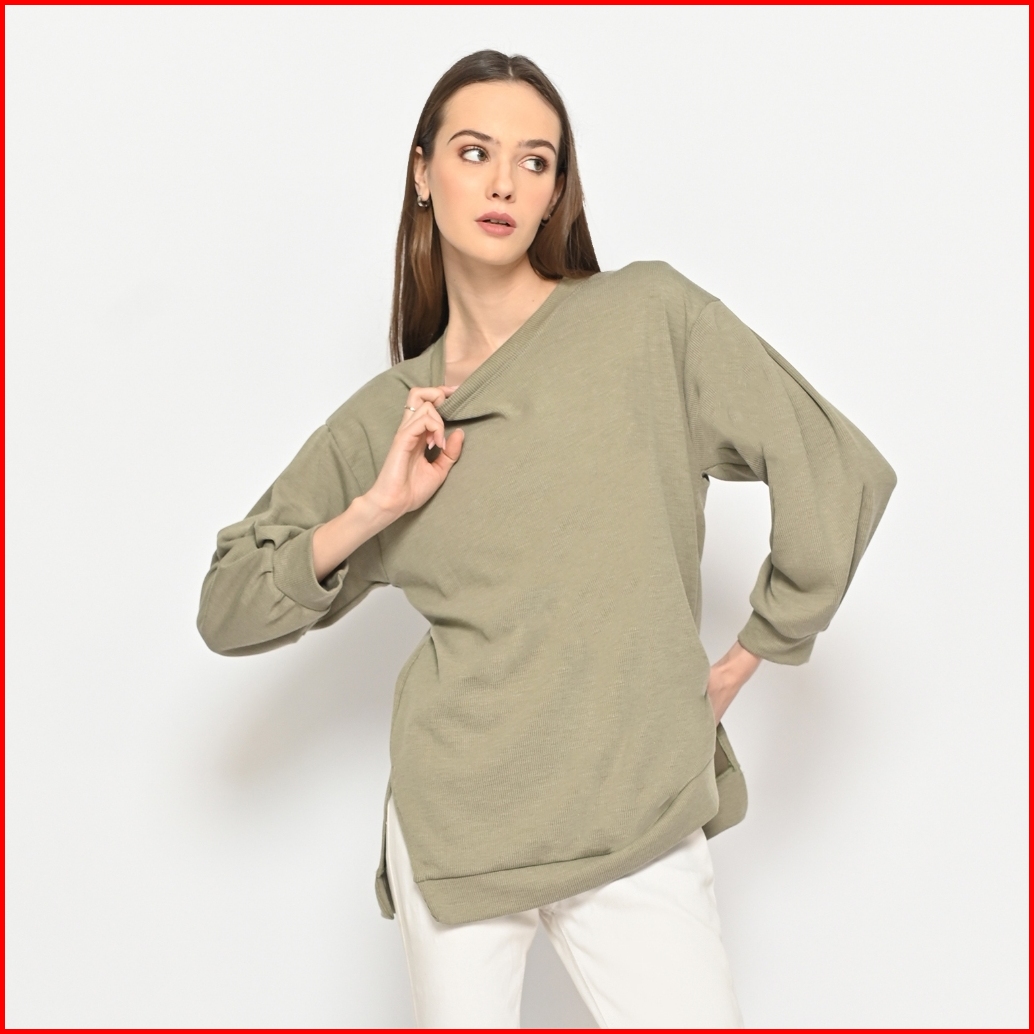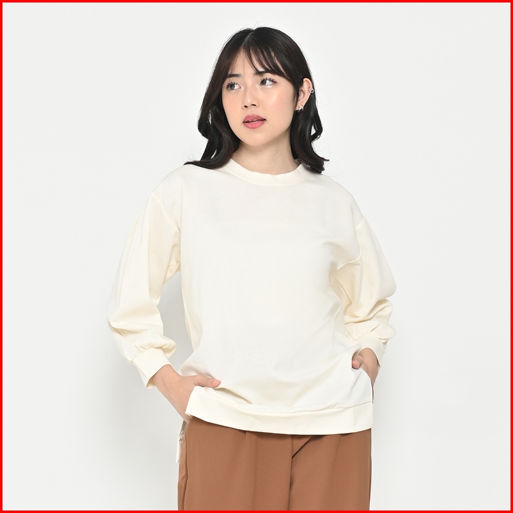 Queentin Kaos Wanita Pullover 0230 Cotton Super Spandex Polos Lengan Panjang Balon