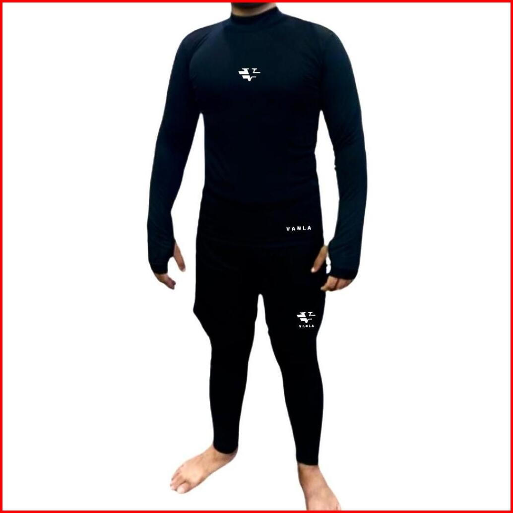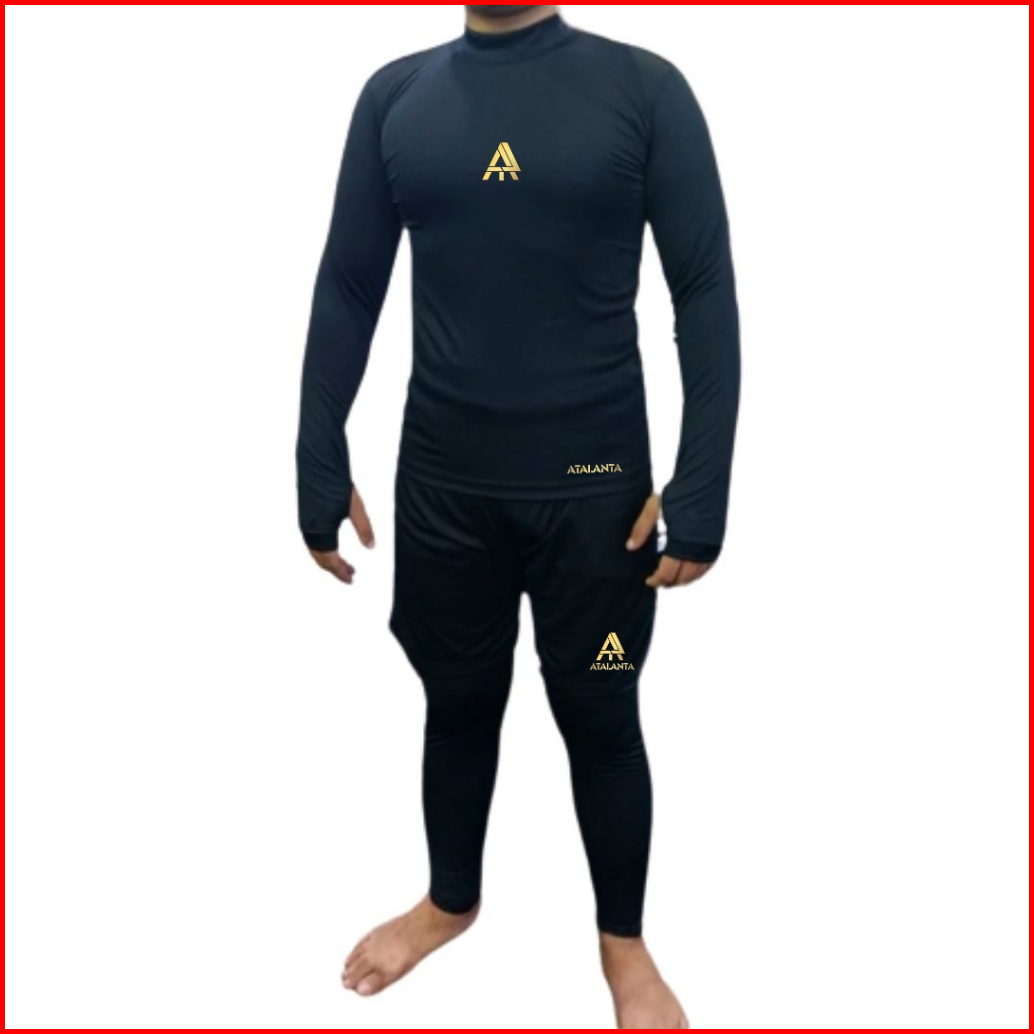 Paket Setelan Baselayer Pria Baju Manset Olahraga Celana Pendek Dan Legging Panjang Sport Running