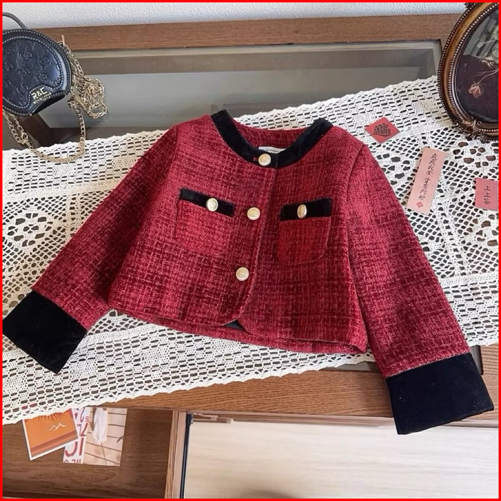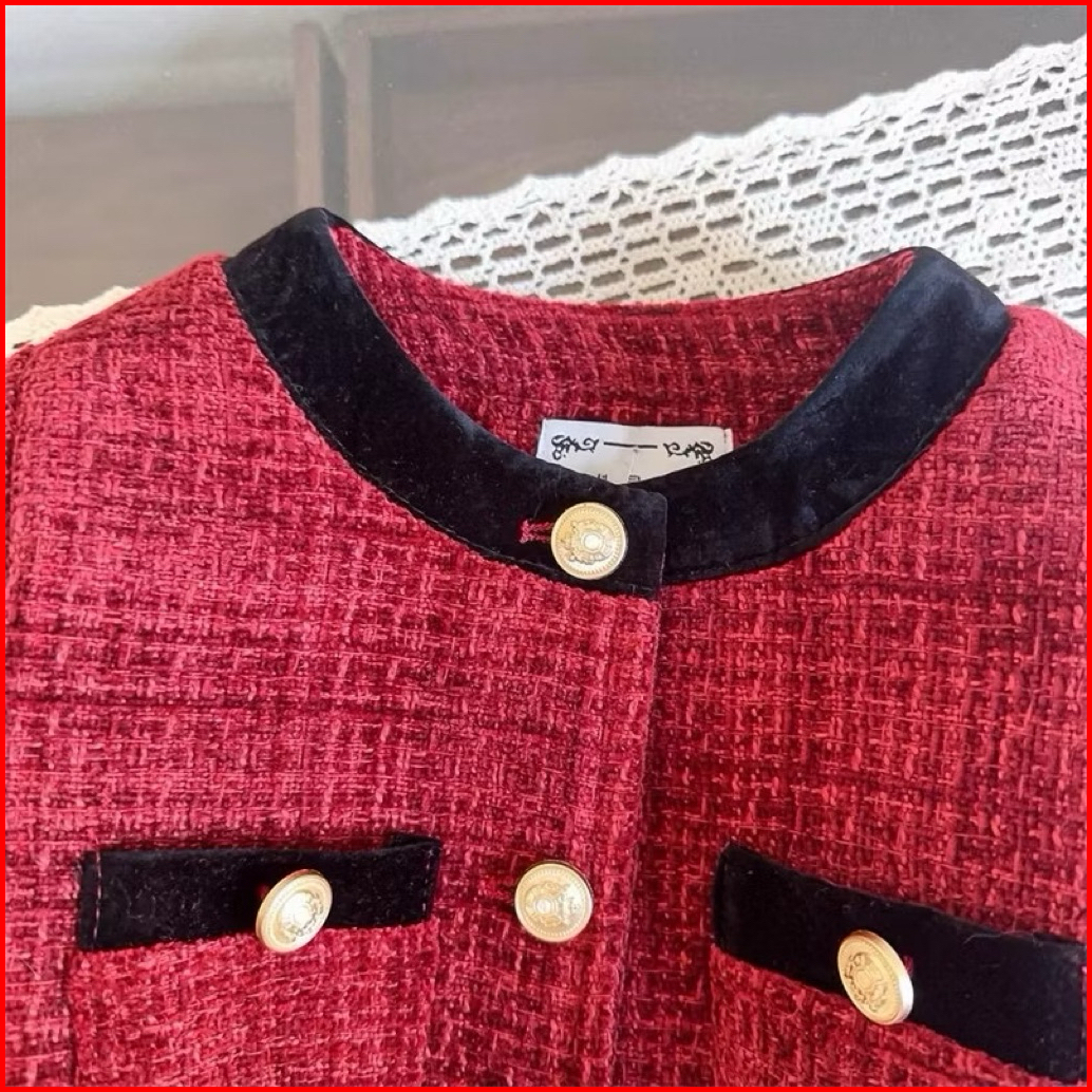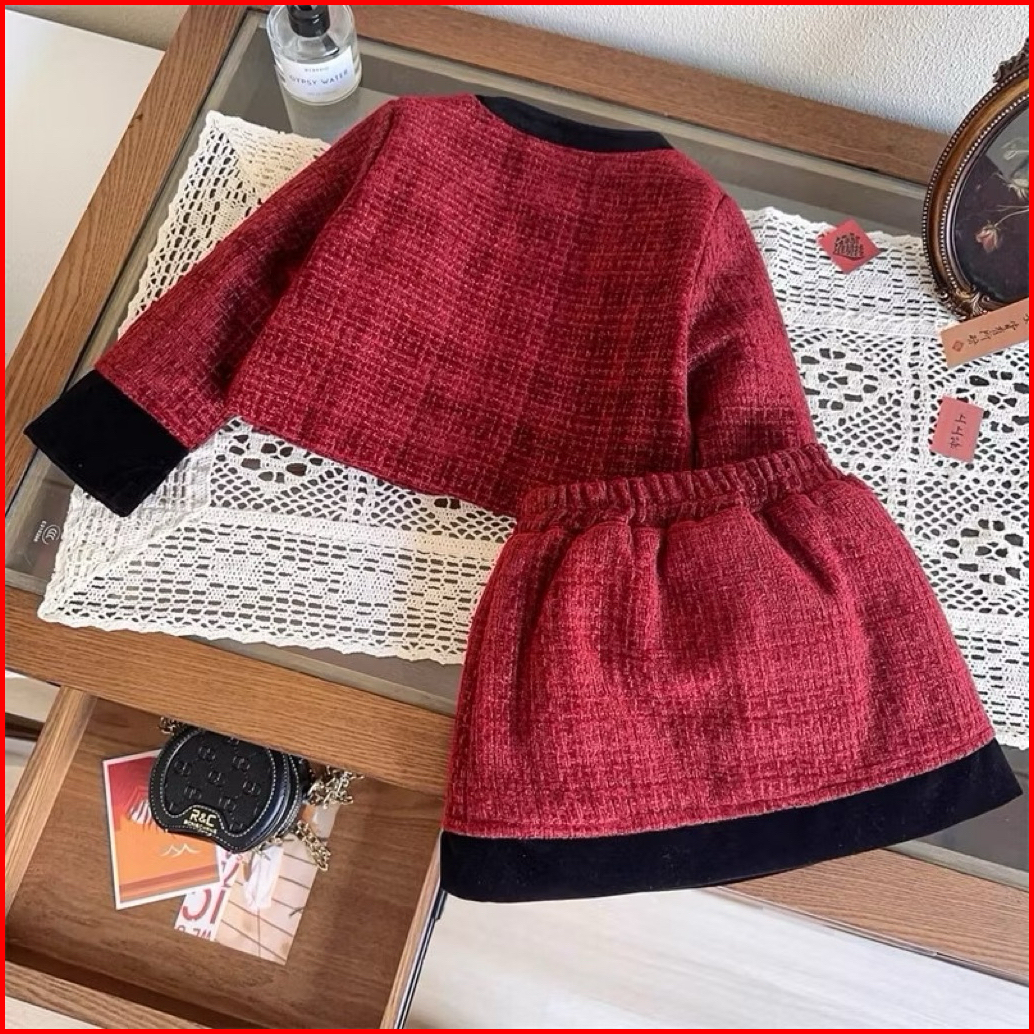 Dailykids Setelan Rok Tweed Merah Import Anak Perempuan