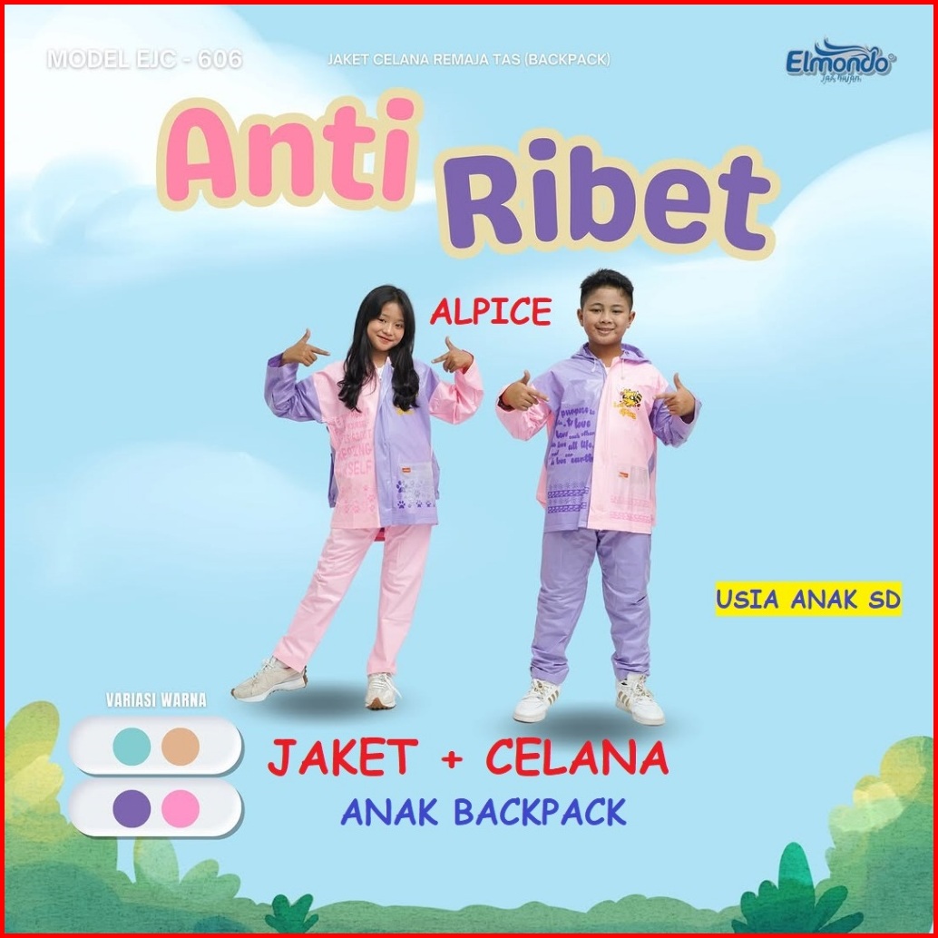 Jas Hujan Elmondo Jaket Celana Backpack Anak Usia 7-12 Tahun