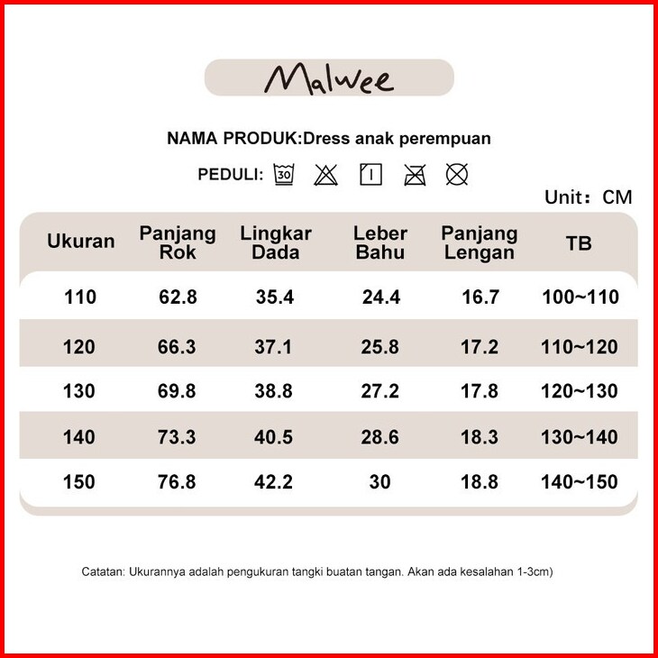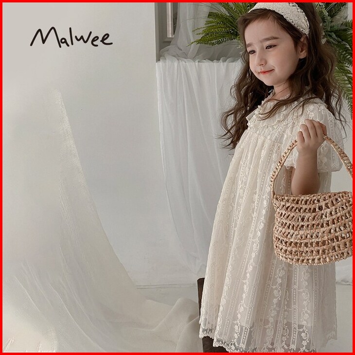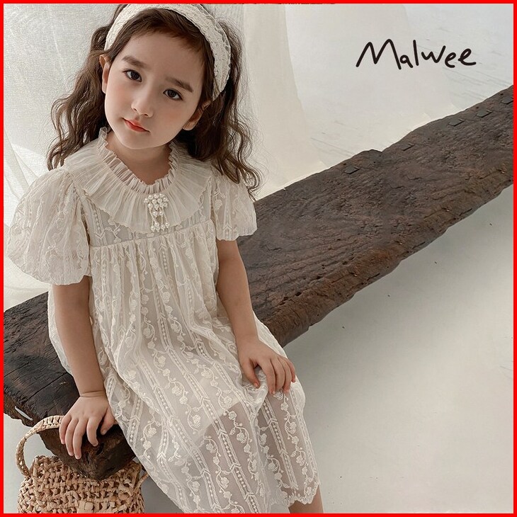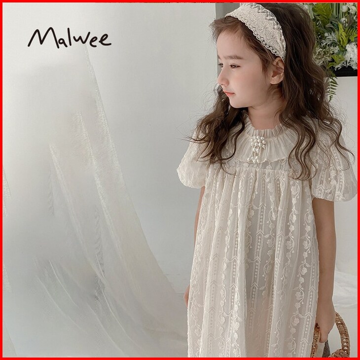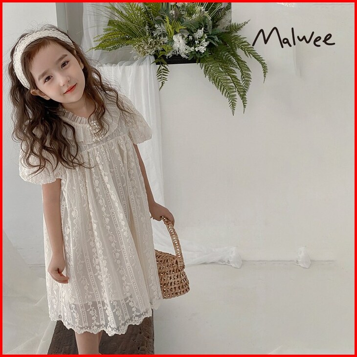 Malwee 2-10 Tahun Dress Anak Perempuan Lengan Baju Puff Gaun Putri Renda Yang Cantik Gadisnt010