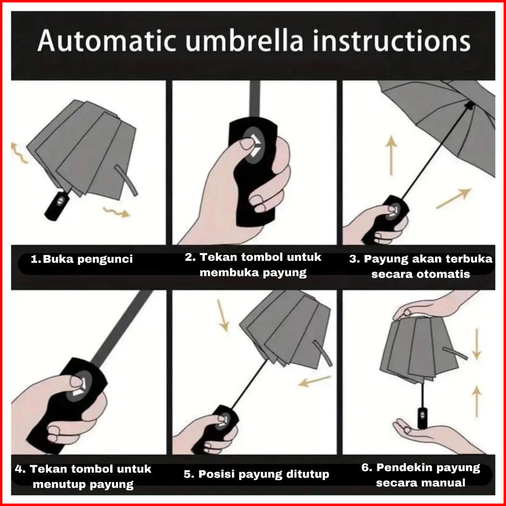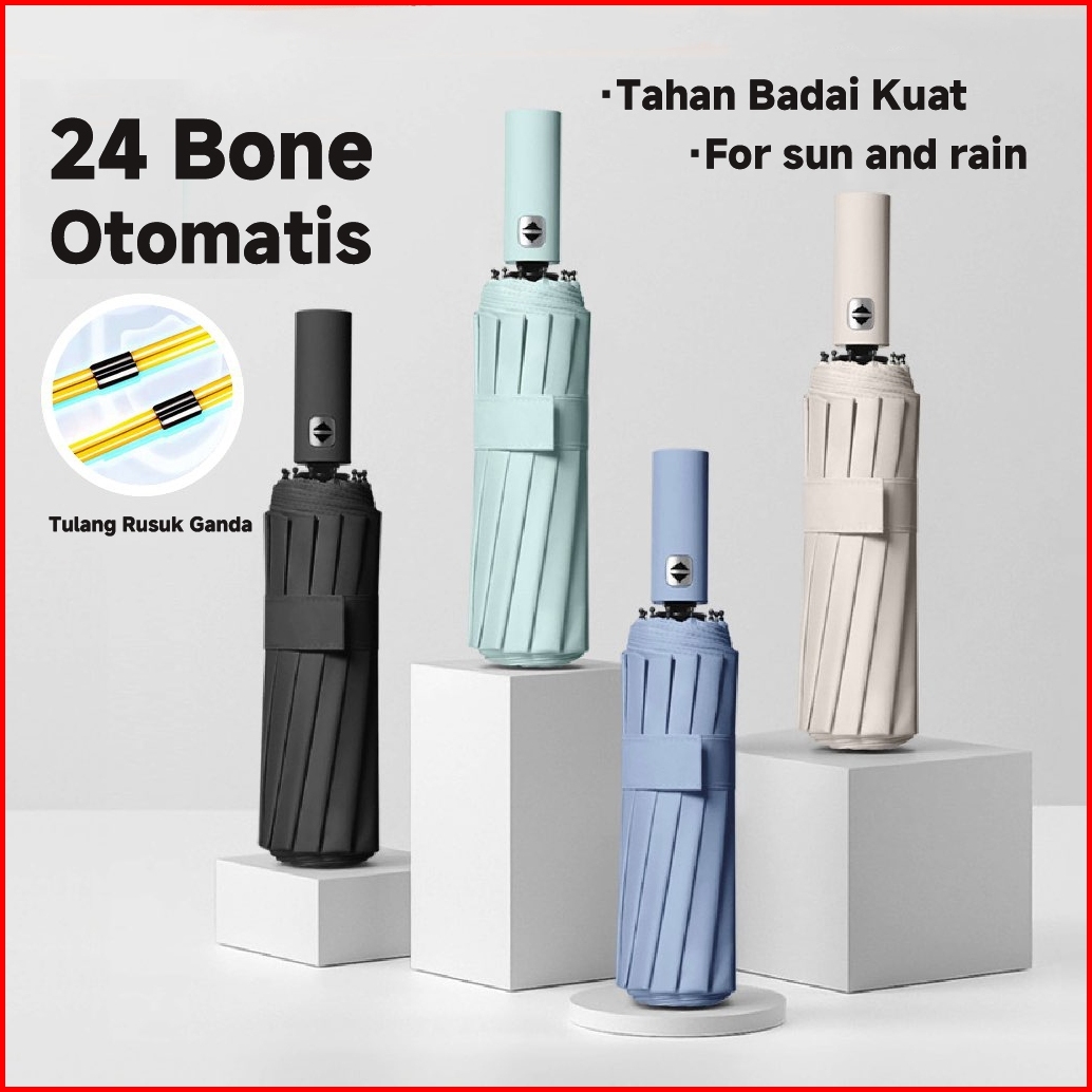 Payung Lipat Premium 24 Ruas Otomatis Buka Tutup Anti Uv Payung Kokoh Payung Hujan Kualitas