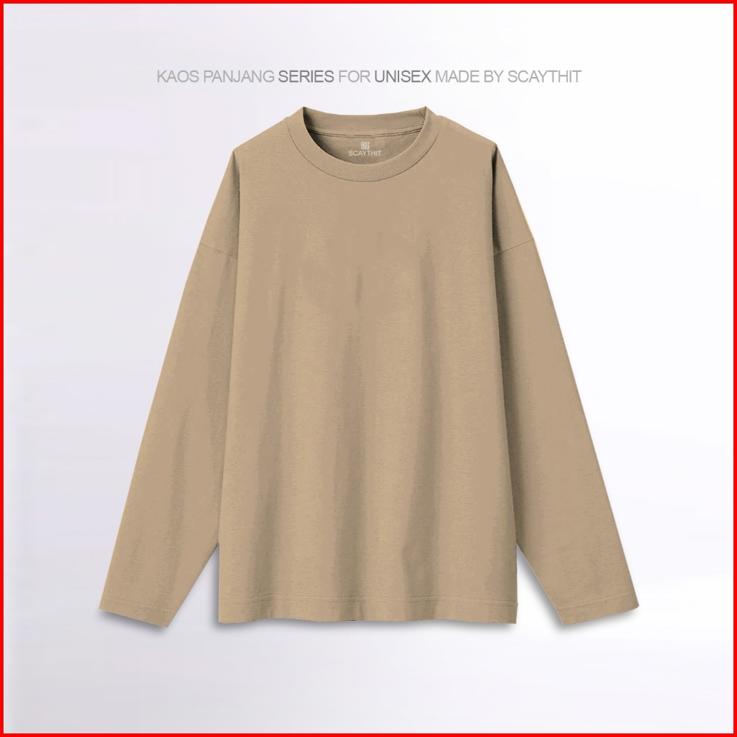 Scaythit - Kaos Polos Lengan Panjang Dewasa Pria Wanita Cotton Combed 30s - T-shirt Kaos Panjang Polos Cream