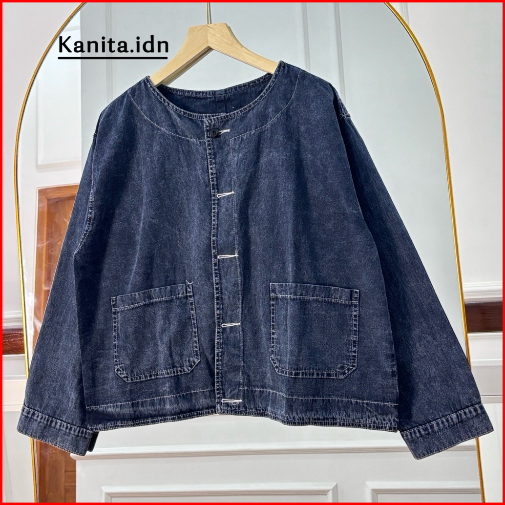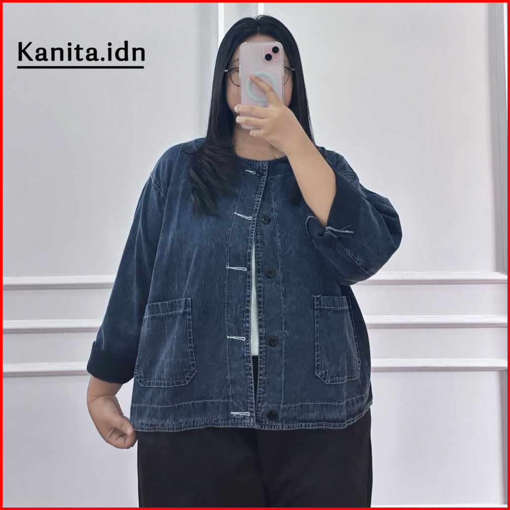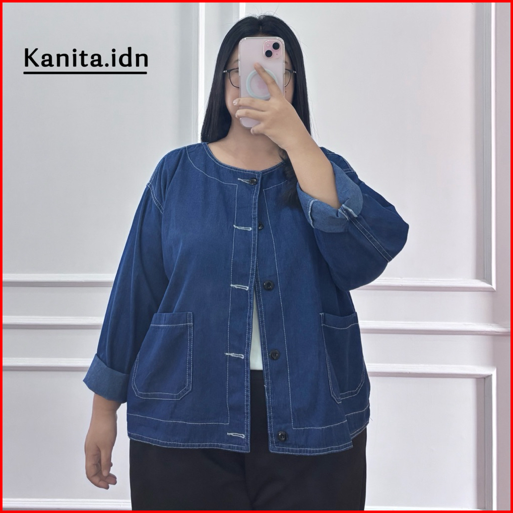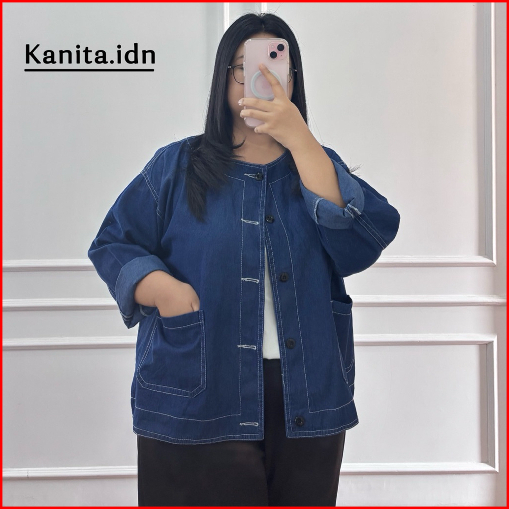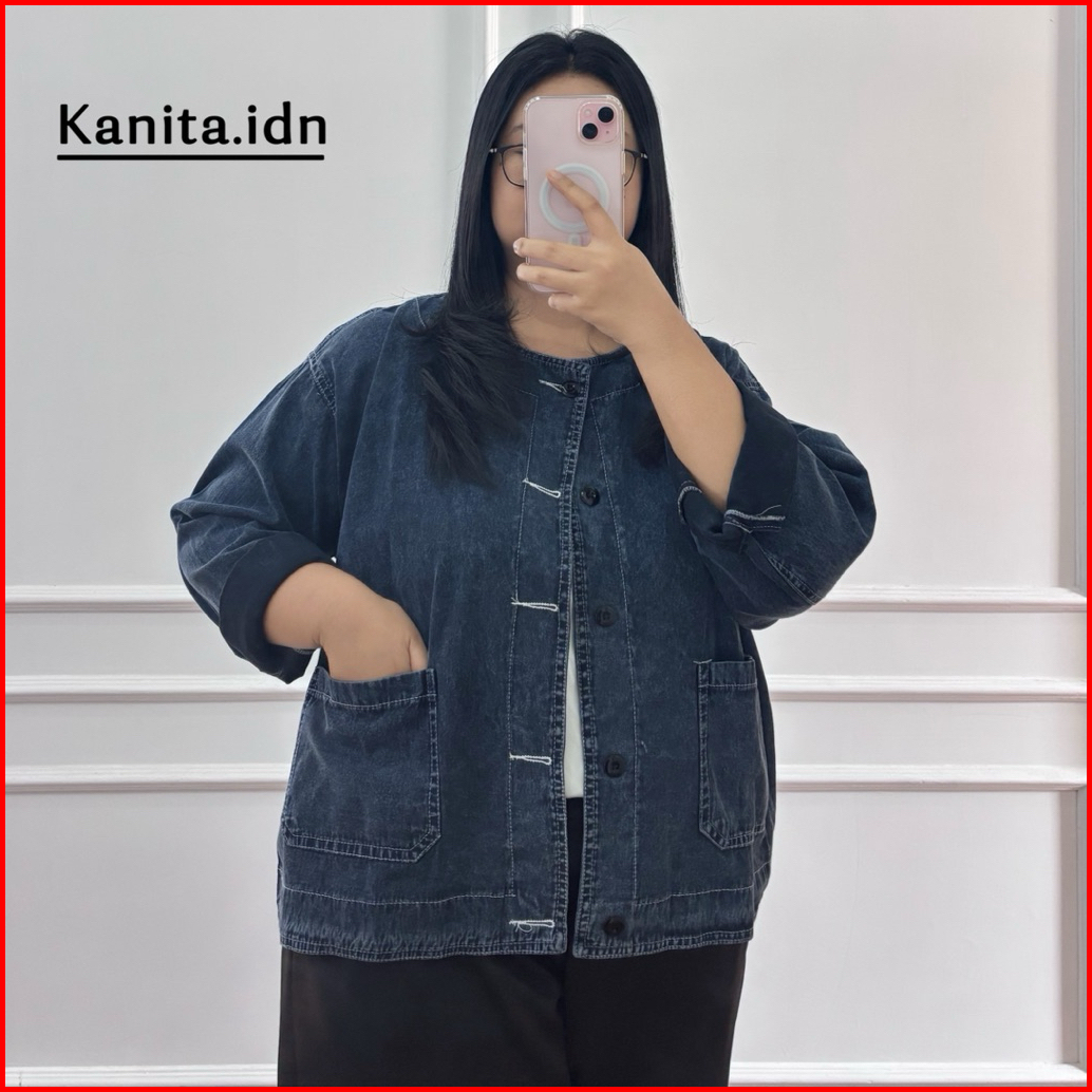 Kanita 33 Jaket Jeans Oversize Pocket Bigsize Wanita Kekinian