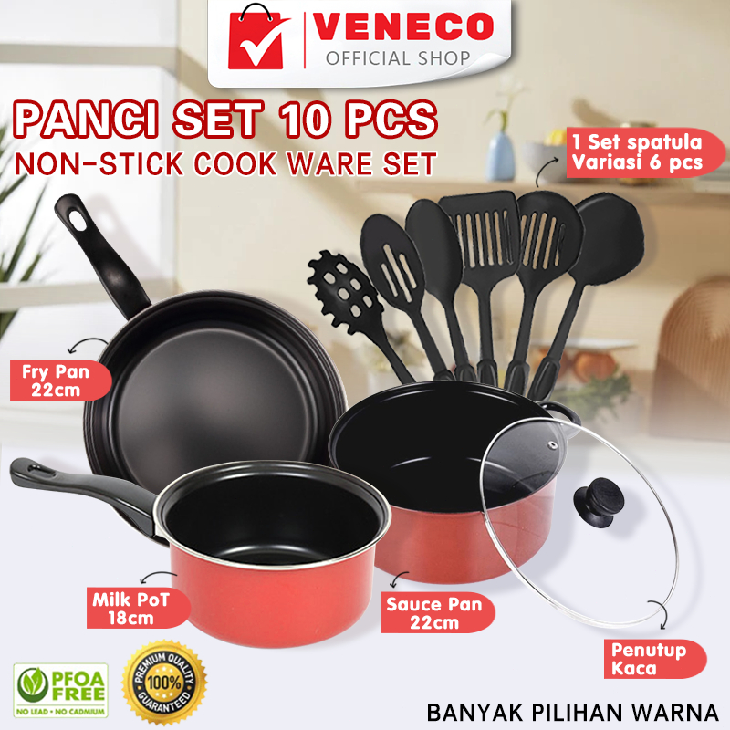 Panci Teflon 1 Set 10 Pcs panci set lengkap Panci Stainless steel Anti Lengket best seller