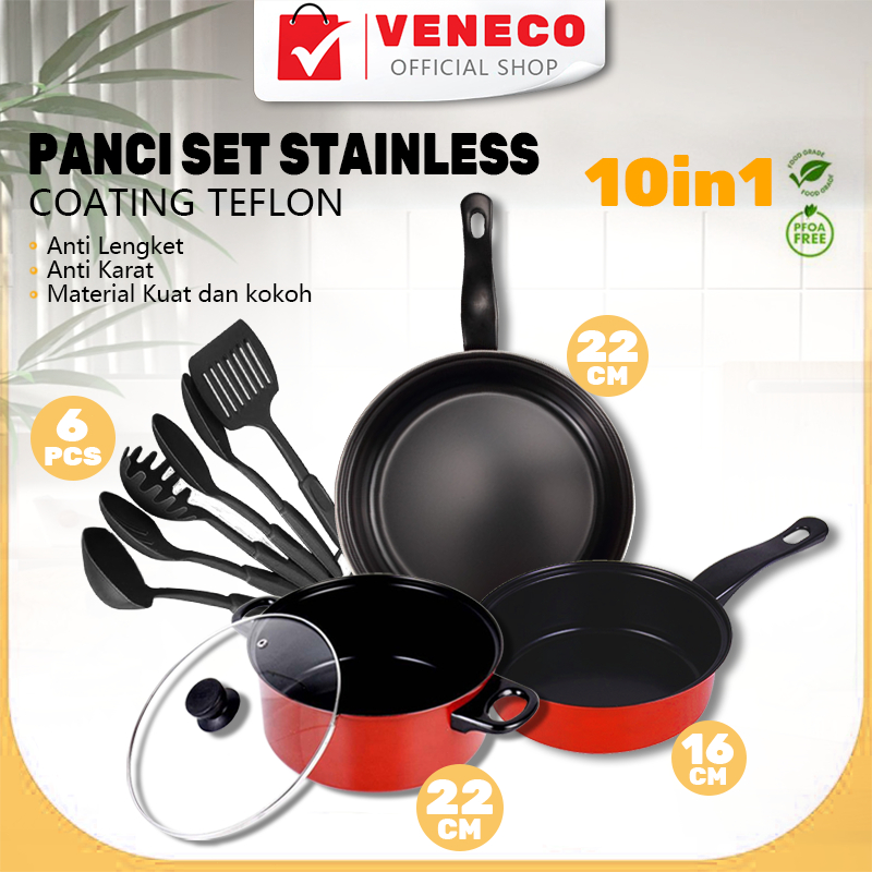 Peralatan Masak Lengkap 10 Pcs dalam 1 set | Cookware Panci Set | Wajan Penggorengan Spatula Set Isi 10Pcs | 1 Set Frypan