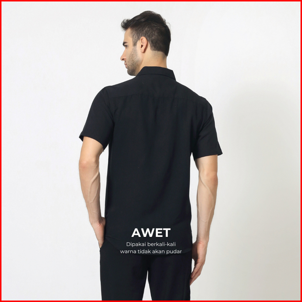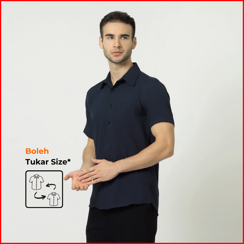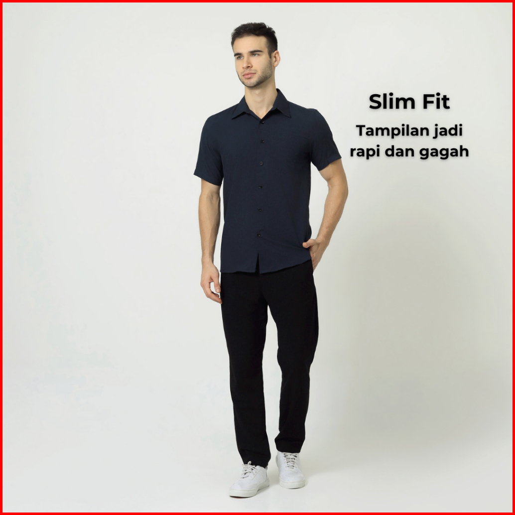 Almano Eston Shirt Ss Navy Kemeja Pria Slim Fit Polos Pendek Biru Dongker