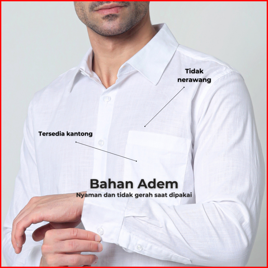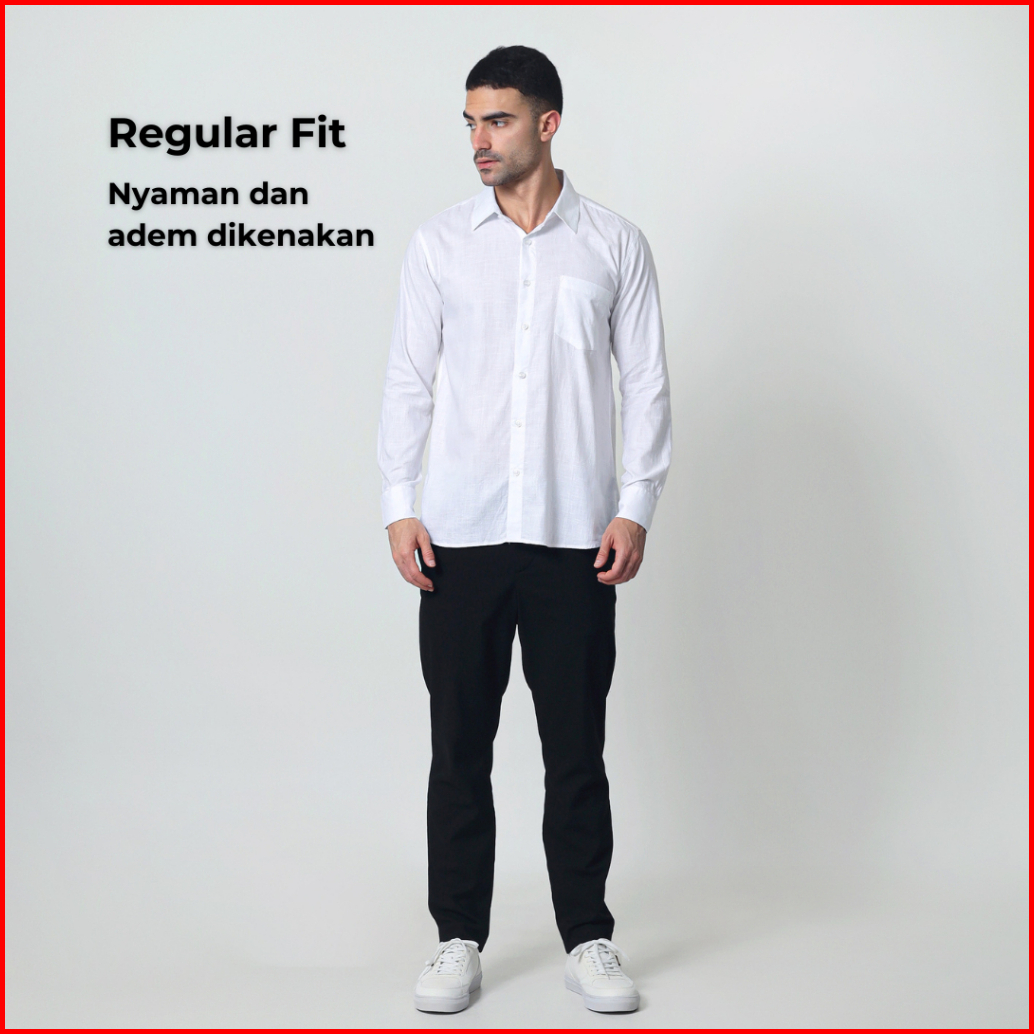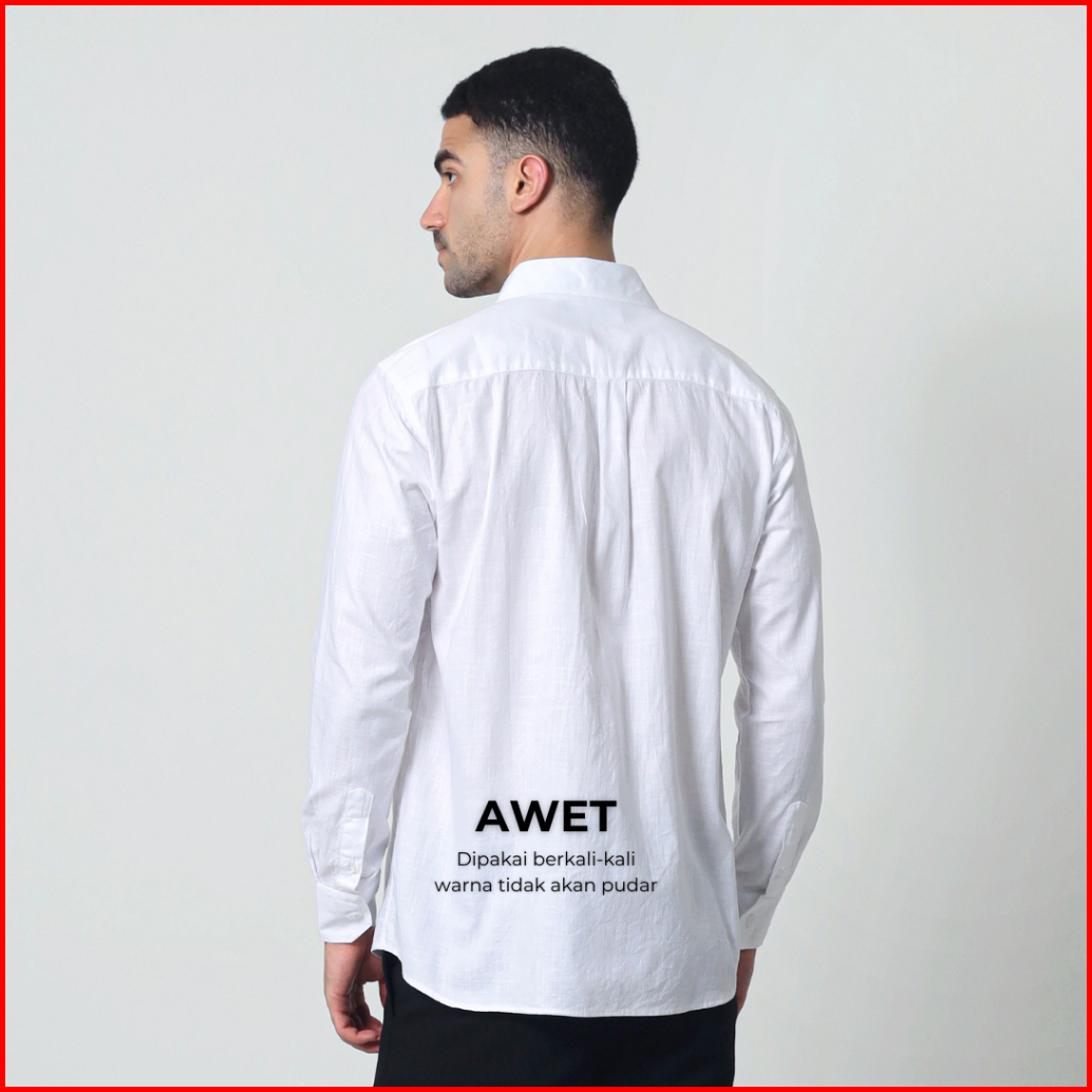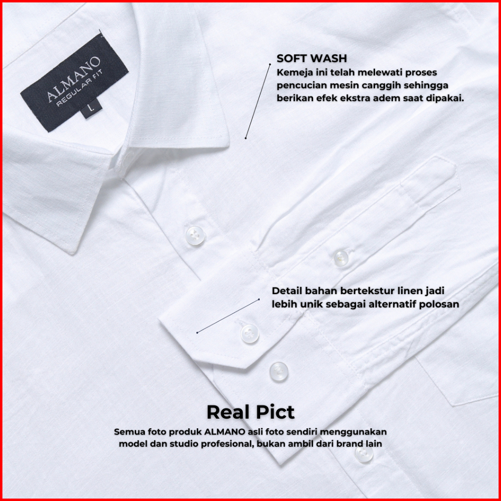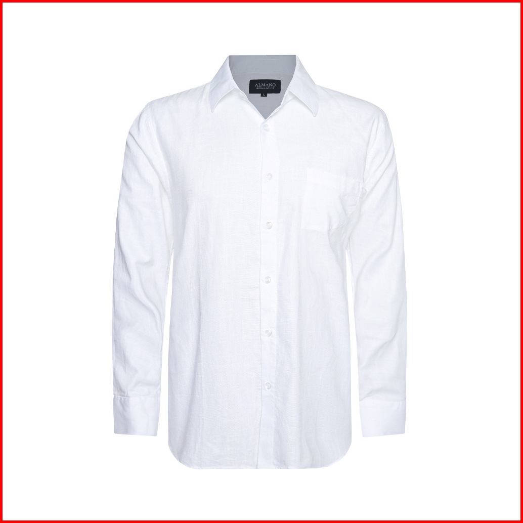 Almano Linen Soft Shirt Ls White Kemeja Pria Regular Fit Panjang Putih