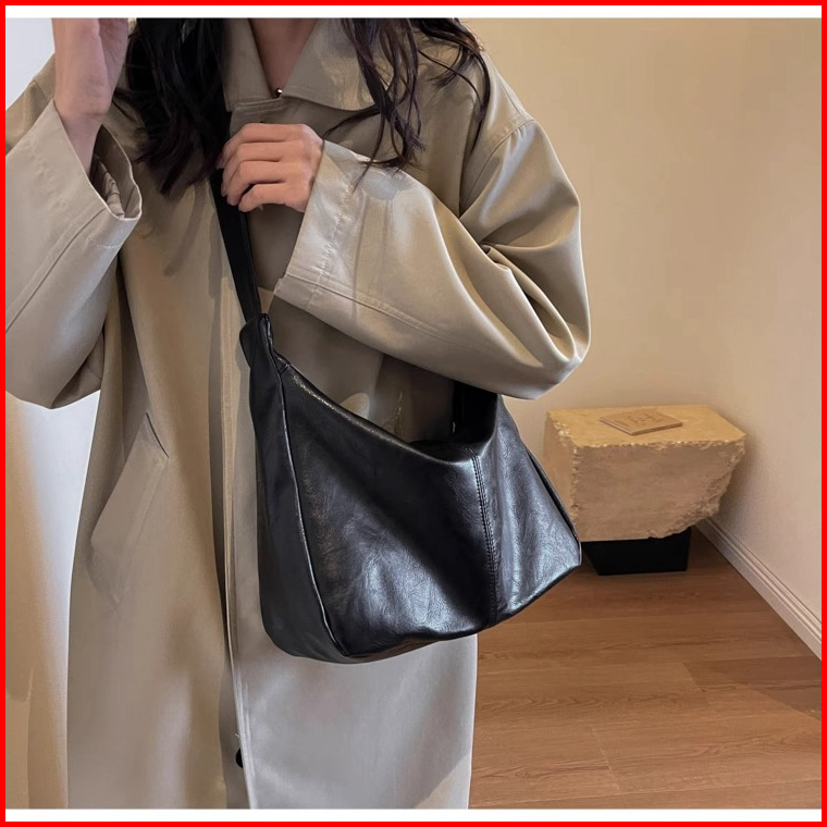 Oza - Tote Bag Wanita Kuliah Kulit Sintetis Hitam Tan