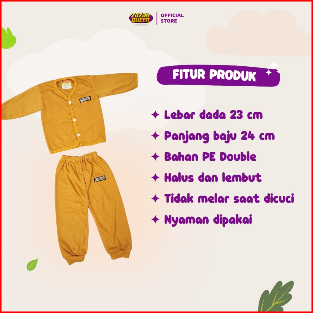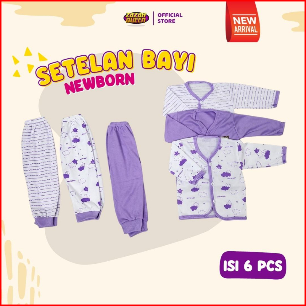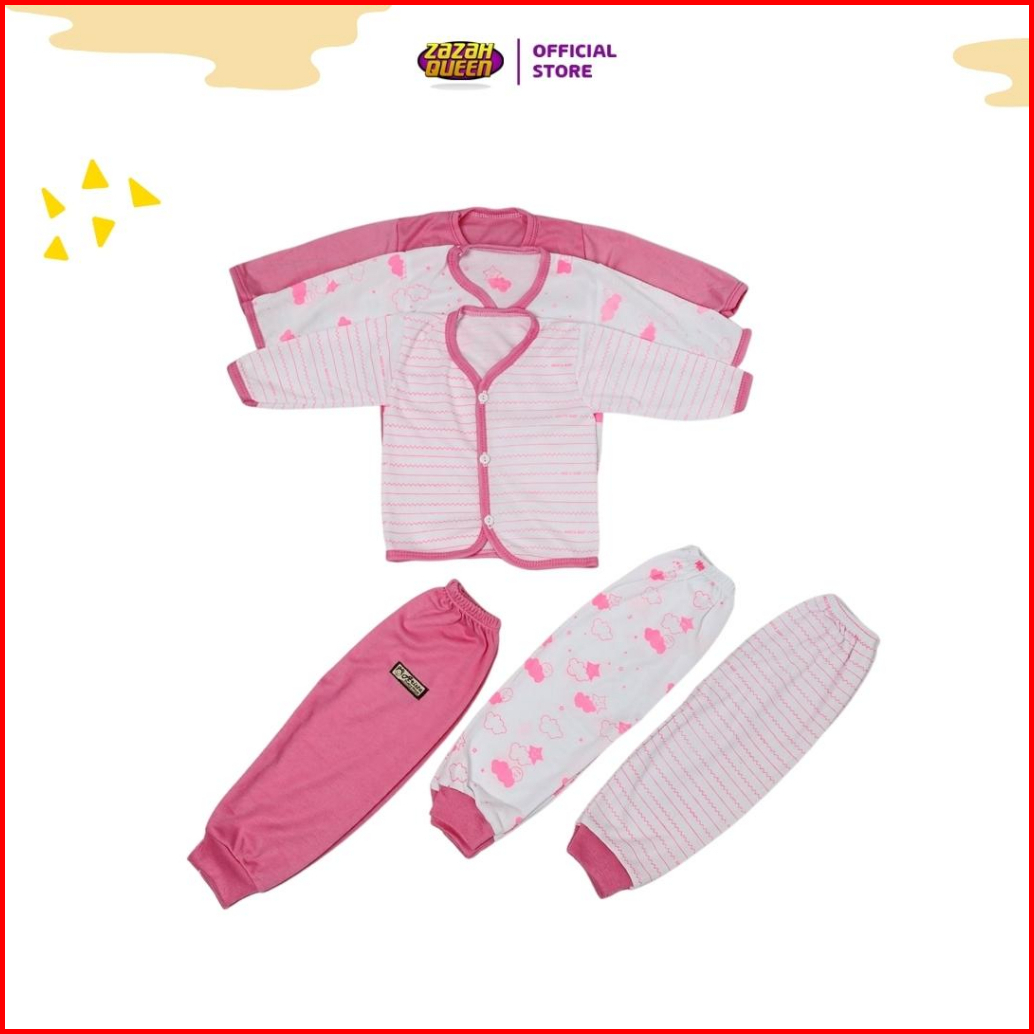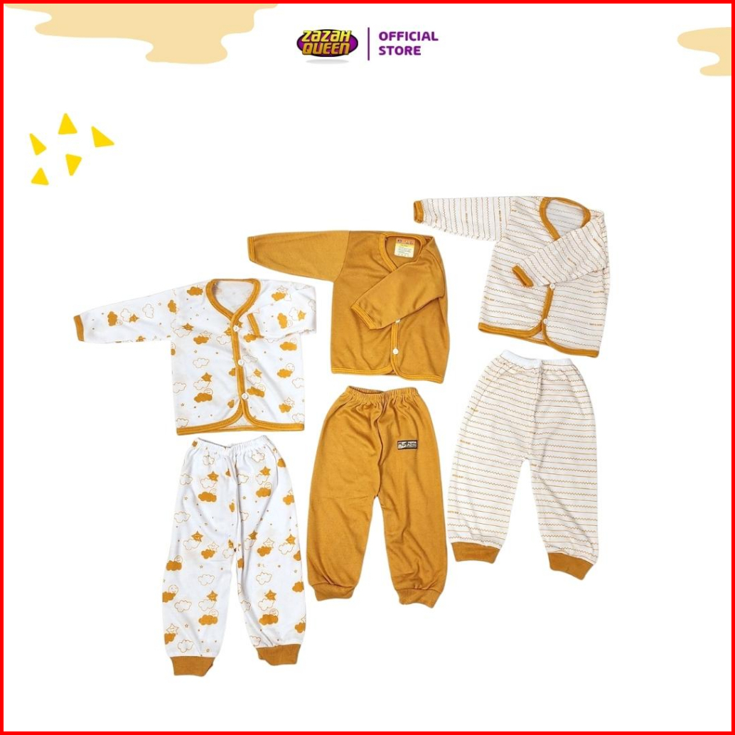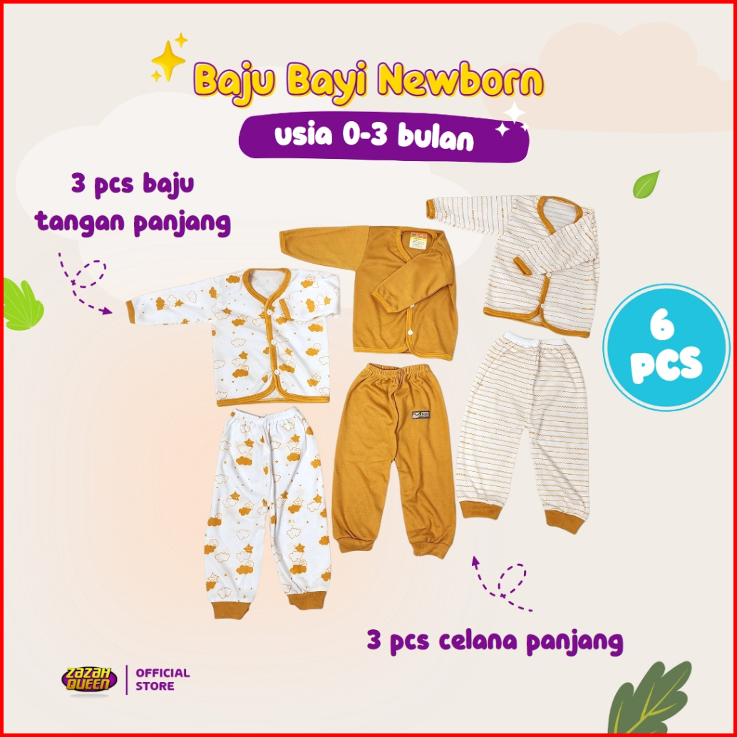 Isi 6 Pcs - Baju Bayi Baru Lahir Lengan Panjang Kancing Depan Usia 0-3 Bulan