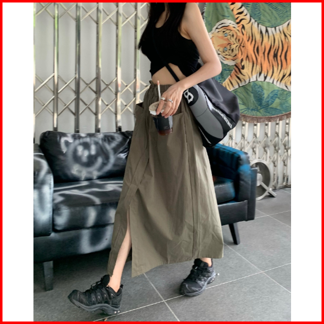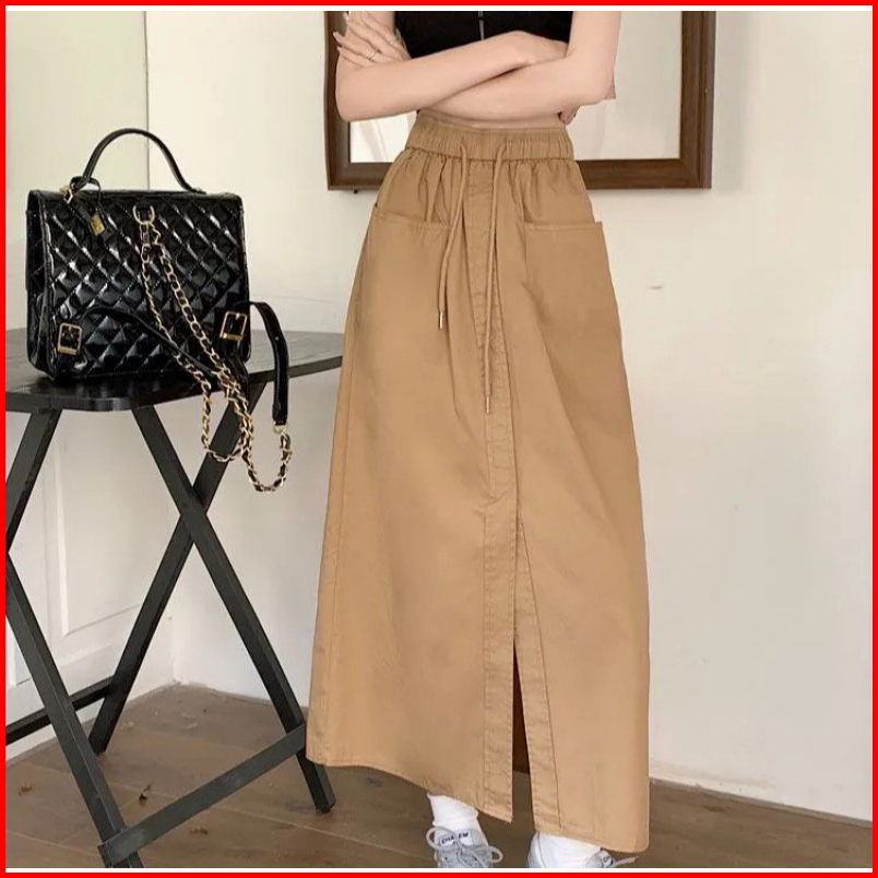 Rsb Cpg539 Rok Cargo A-line Wanita Bahan Katun Rok Korean Style Fashion Kekinian