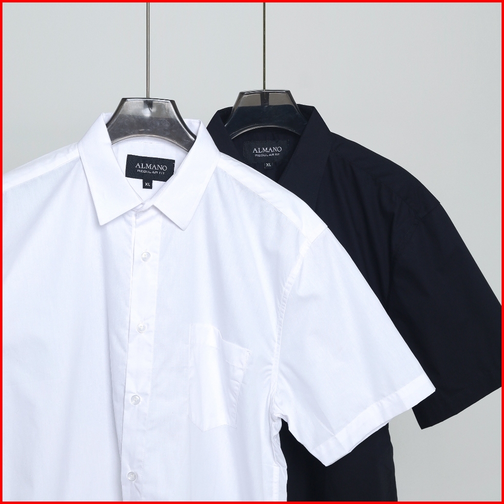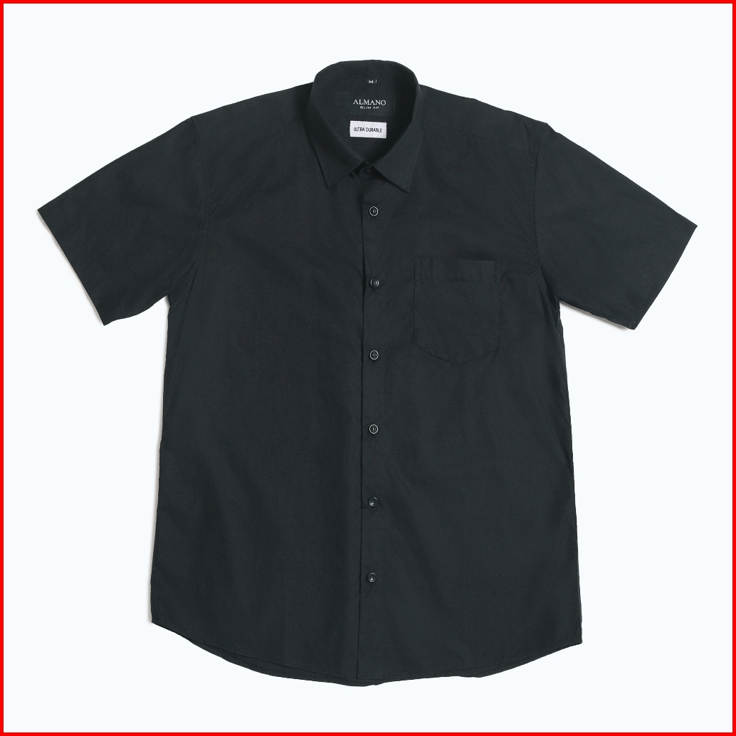 Almano Vision Shirt Ss Black Kemeja Pria Regular Fit Polos Pendek Katun Hitam