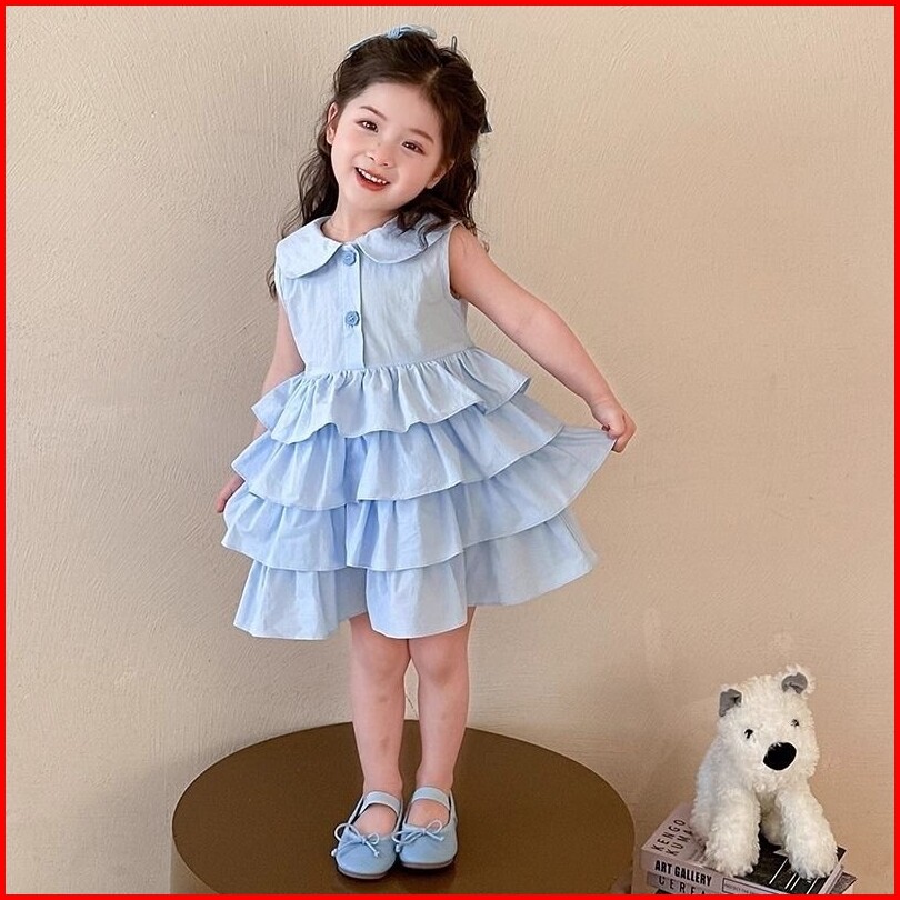 Duniababy Gaun Anak Perempuan 1-7 Tahun Model Kue Tulle Kerah Boneka Motif Kartun Warna Pink Biru Cocok Musim Panas