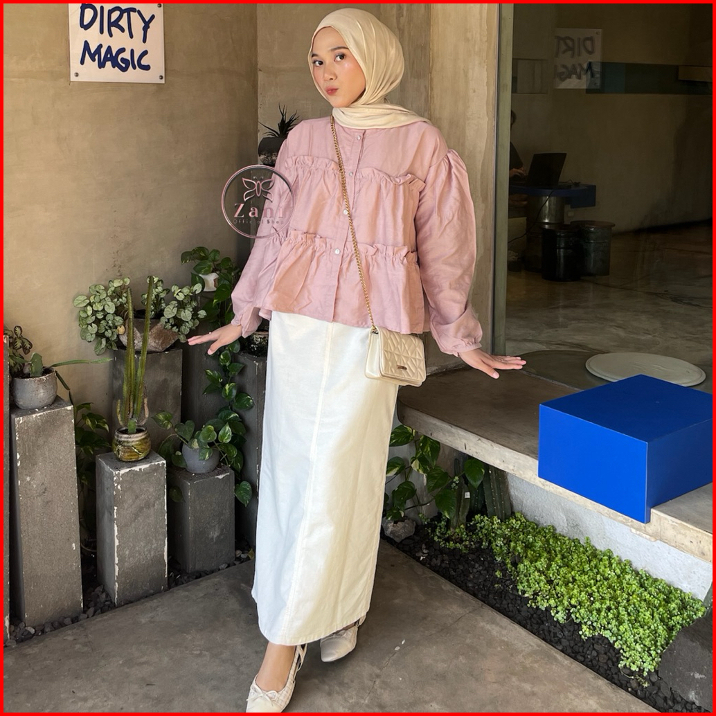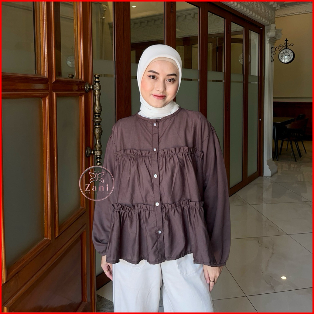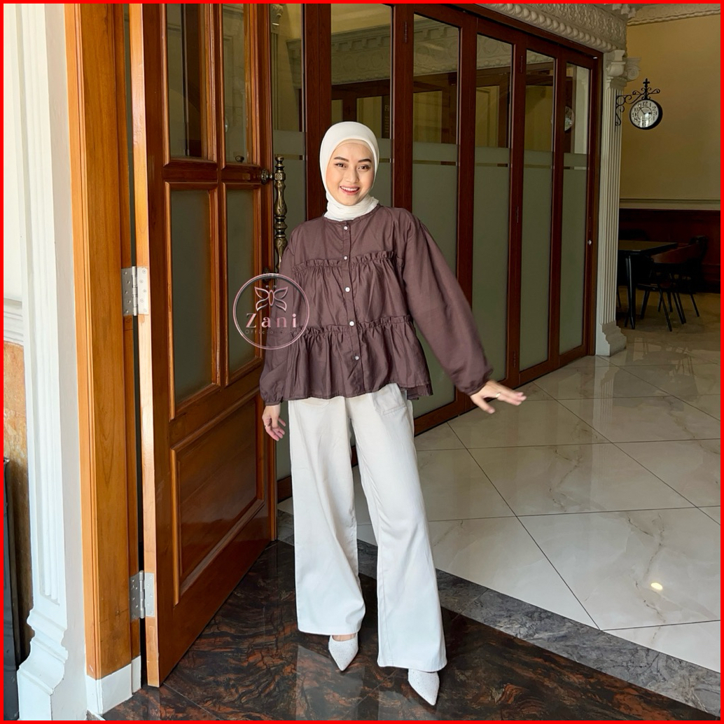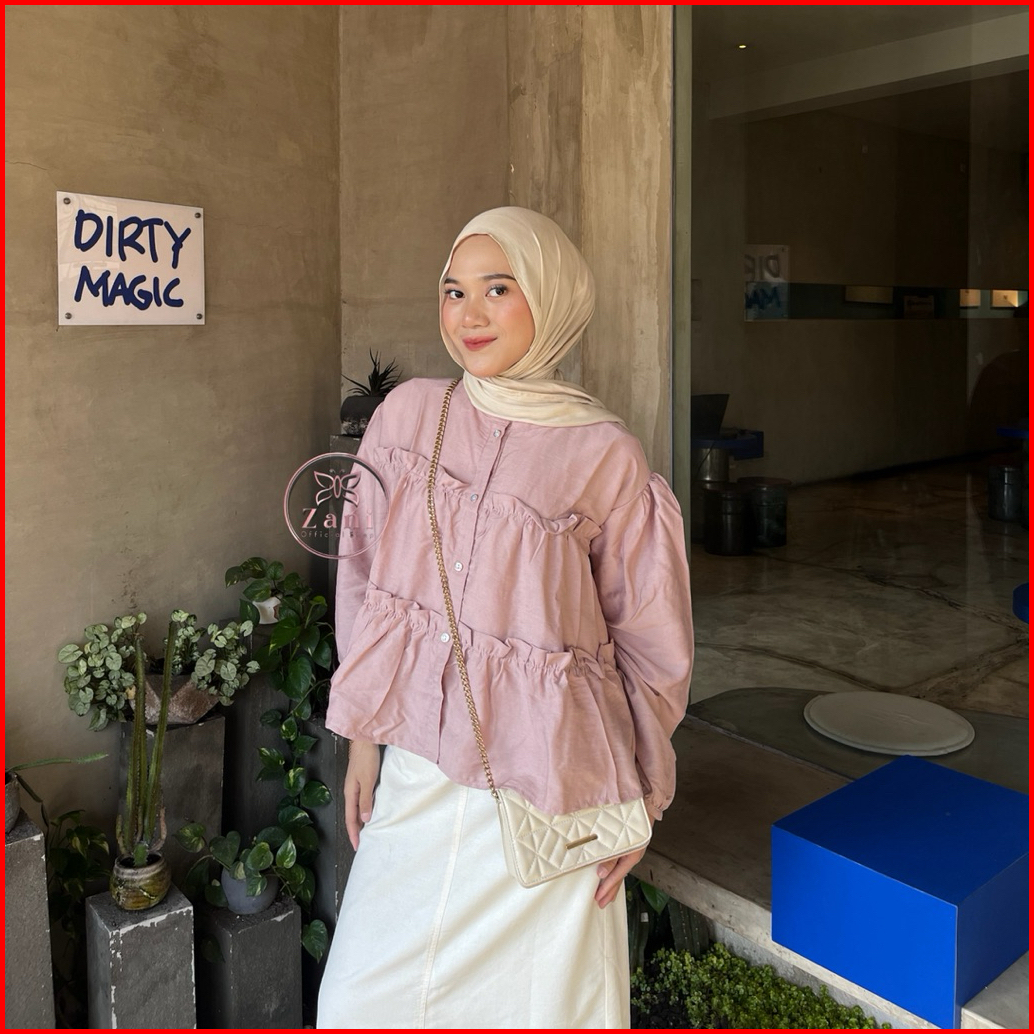 Zani - Feena Top Blouse Wanita Ruffle Lengan Balon Korean Style - Atasan Wanita Polos Rempel