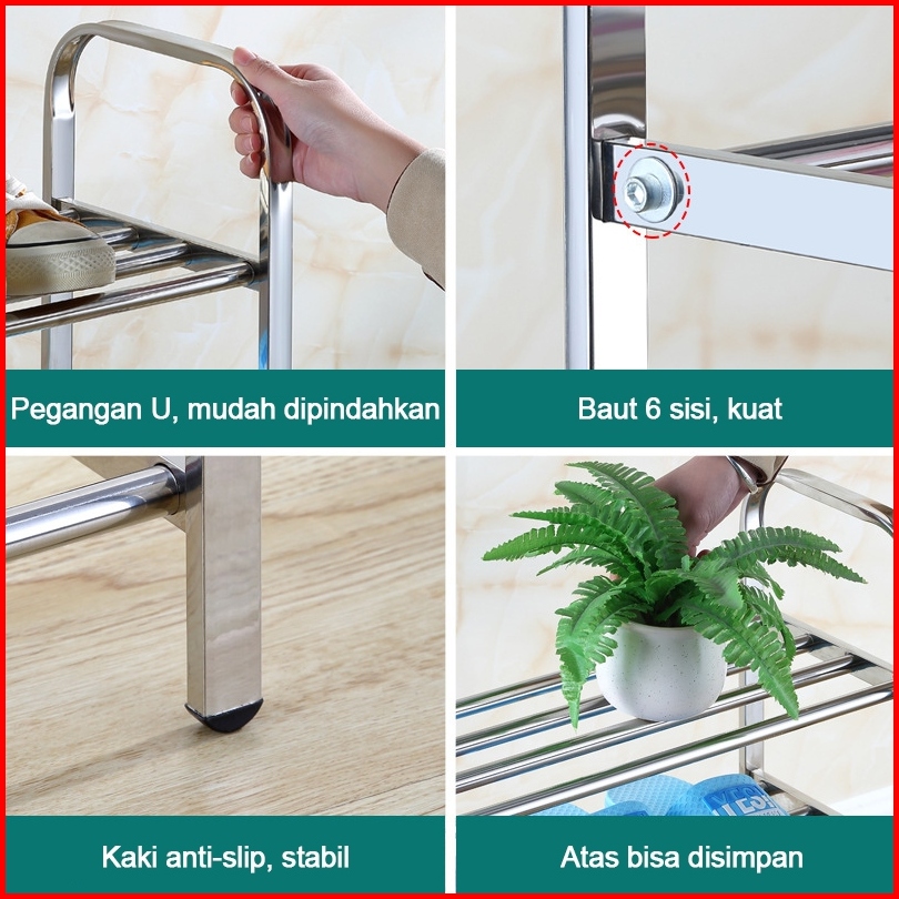 Neat Spacerak Sepatu Stainless Steel Multifungsi Rak Susun Rak Sandal Rak Serbaguna Rak Sepatu Rak Dapur 3 4 5 Susun