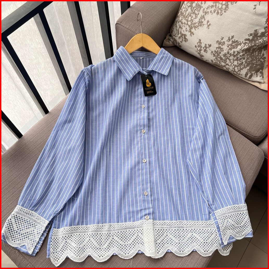 Zani - Eris Shirt Cotton Mix Renda - Kemeja Salur Wanita - Atasan Basic