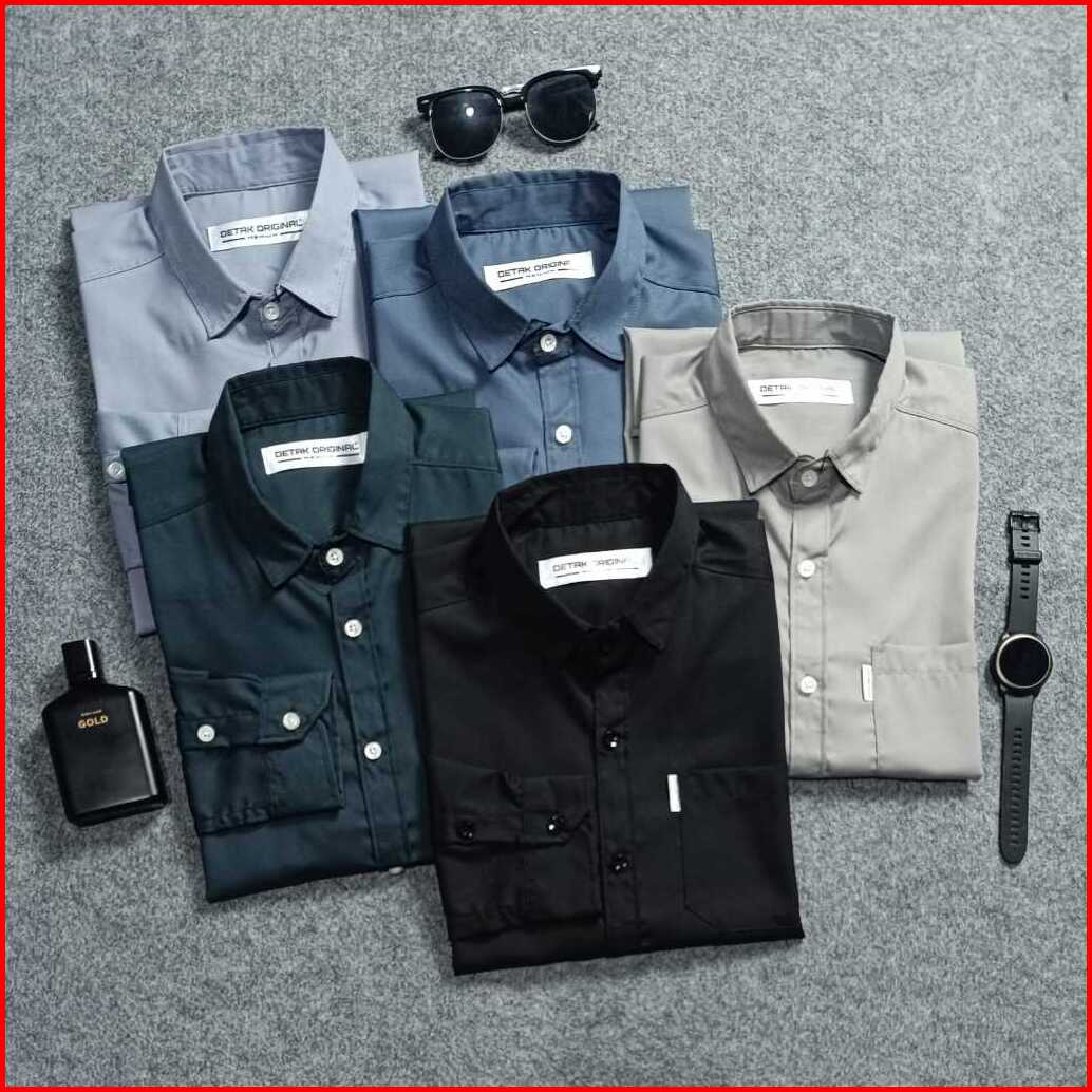 Detak Original Kemeja Polos Twill Premium Pria Lengan Panjang Slim-fit
