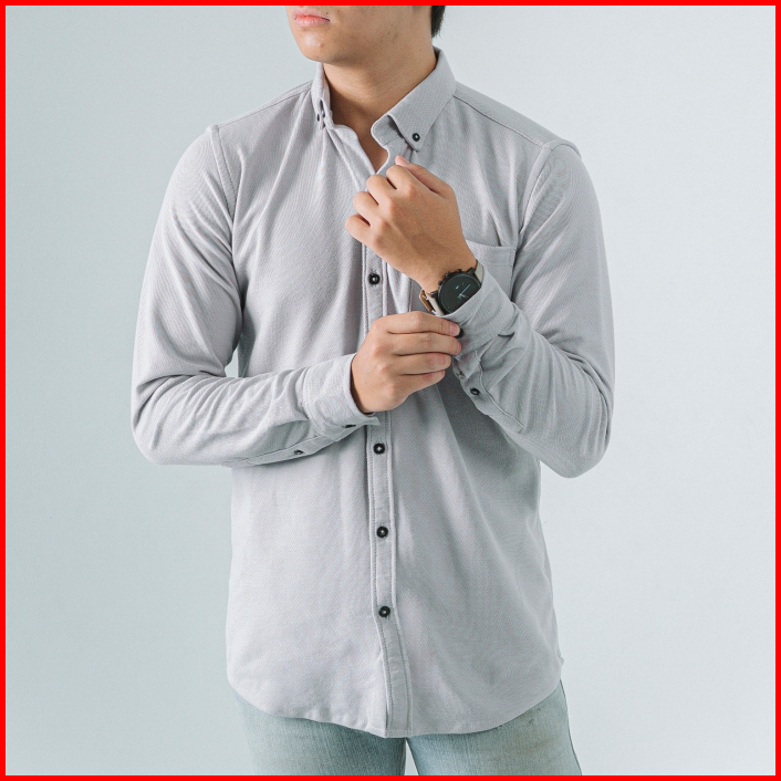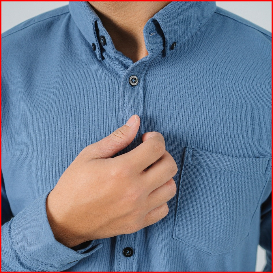 Loku Kemeja Lengan Panjang Pria Original Cotton Pique Steel Blue