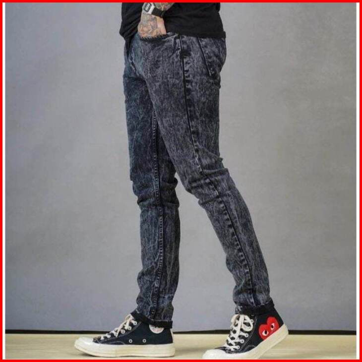 Celana Panjang Jeans Snow Black Hitam Blue Distro Bandung Pria Lelaki Laki Dewasa Pensil Skinny Stretch Street Strit Kar