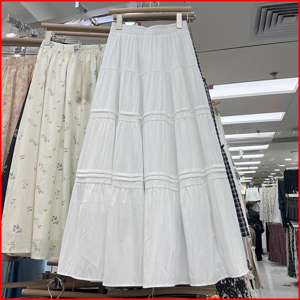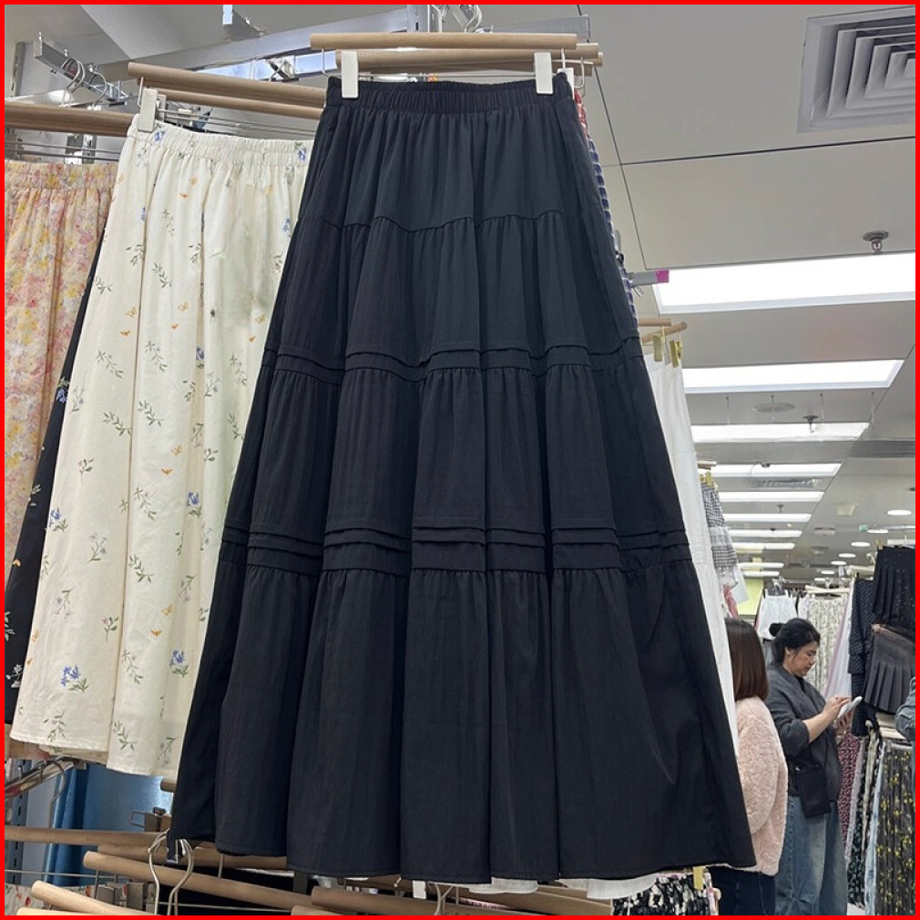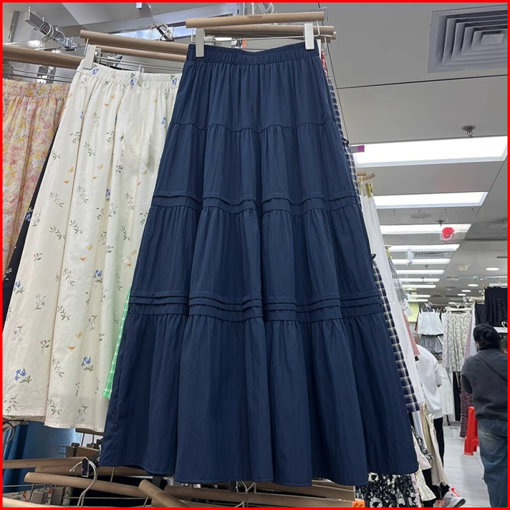 Rok Wanita Rok Lipit A-line Gaya Kekinian Elegan Warna Hitam Putih Biru Laut Bahan Katun Halus Desain Lipat Bergaya Ootd