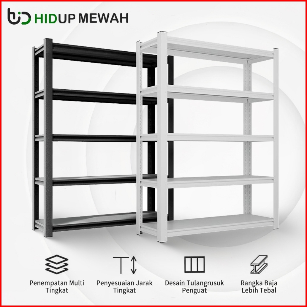 Hid 60-120cm 5 Susun Serbaguna Rak Besi Lemari Dapur Supermarket Gudang Rak Besi Rak