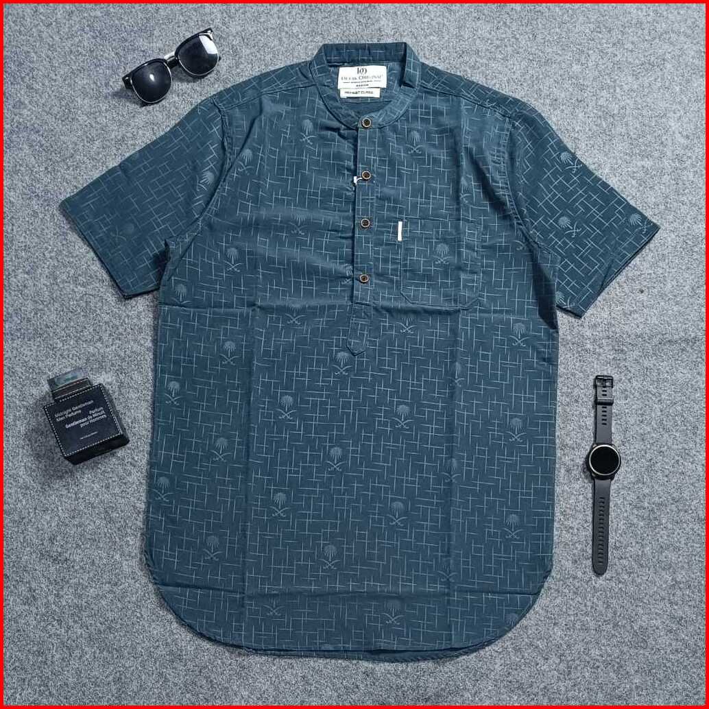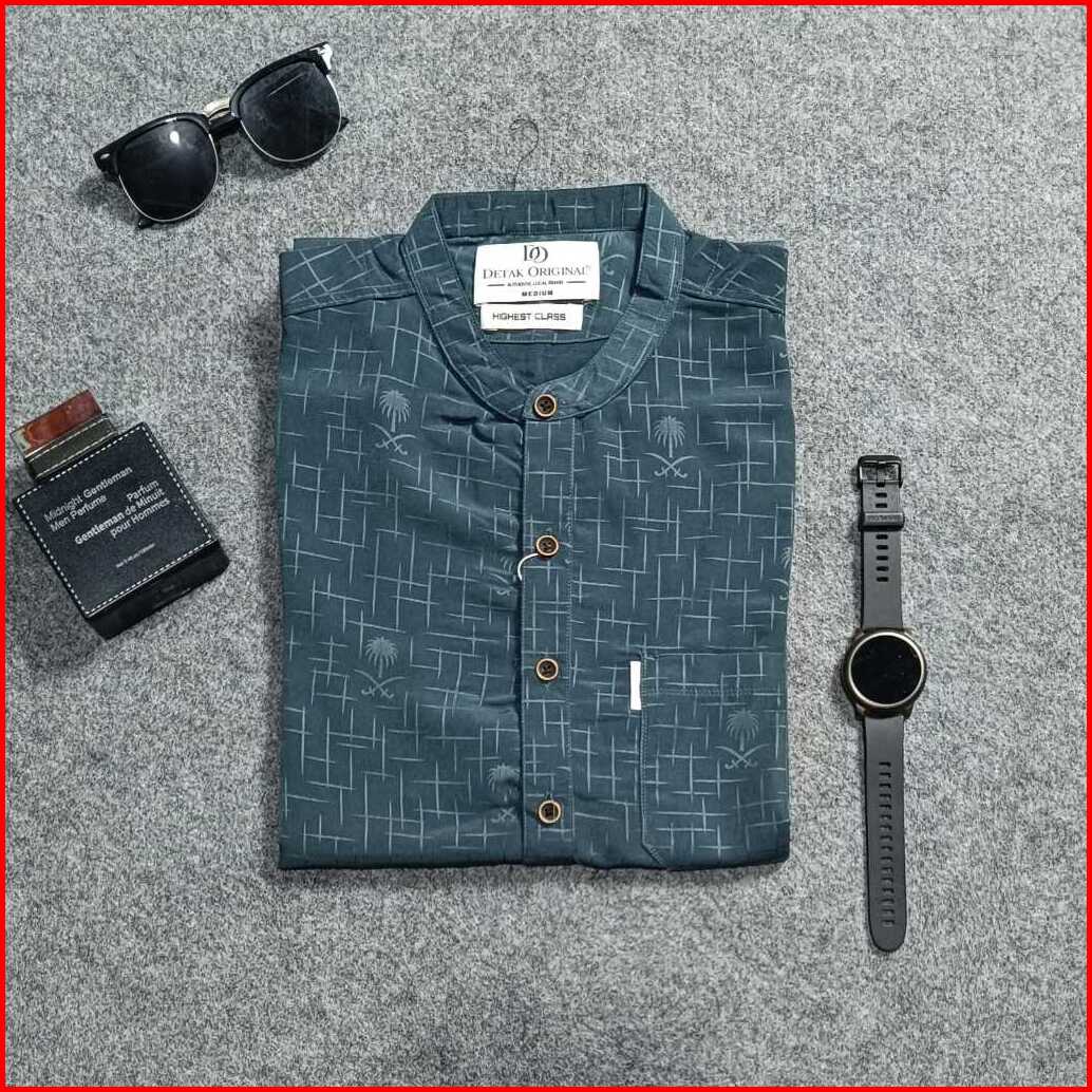 Detak Original Koko Kurta Kemeja Muslim Pria Lengan Pendek Motif Kurma Abu Sma
